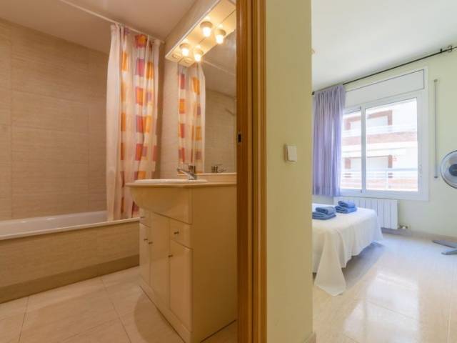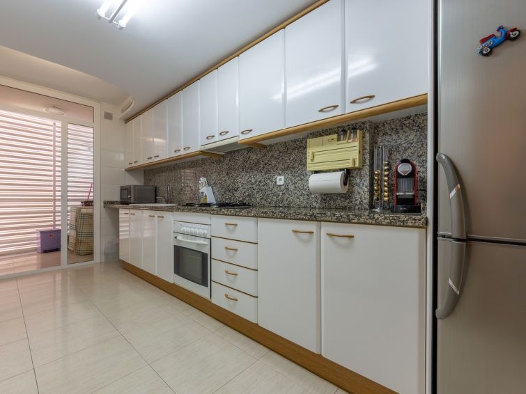 "Carner", apartamento de 4 estancias 130 m2 en el 1° piso. Vivienda adecuada para 4 adultos + 2 niños. Luminoso, con mobiliario confortable: salón-comedor con TV digital. Salida a la terraza. 1 dorm. con 1 cama de matrimonio (150 cm, 200 cm de longitud). 1 dorm. con 2 camas (90 cm, 190 cm de longitud). 1 dorm. con 1 cama de matrimonio (1 x 135 cm, 190 cm de longitud). Cocina (4 fogones, horno, lavavajillas, tostadora, hervidor de agua eléctrico, microondas, cafetera eléctrica, Cápsulas de café (Nespresso) extra). Baño/WC, ducha/WC. Ningún tipo de calefacción. Terraza. Muebles de terraza. Vista parcial a la piscina. El alojamiento dispone de: lavadora, plancha, trona, cuna hasta 2 años, secador de pelo. Internet (Wifi, gratis). Plaza de aparcamiento n. 1º 2º (cubierto). A tener en cuenta: adecuado para familias. Apartamento para no fumadores. TV solamente ES. HUTT-068064
