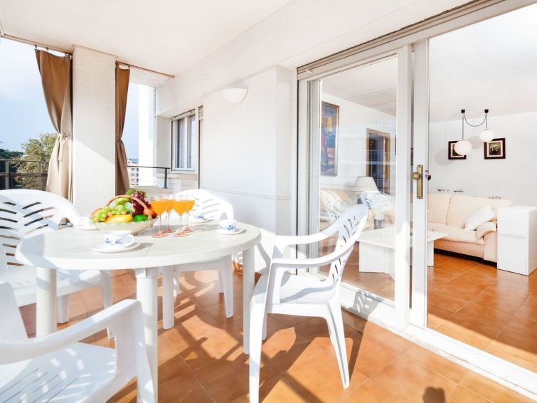 "Punta Garbí", apartamento de 4 estancias 84 m2 en el 5° piso, orientación sur. Espacioso y luminoso, con mobiliario confortable y agradable: salón-comedor con puerta corredera, ventanal orientación sur con mesa de comedor, TV digital y ventilador. Salida a la terraza, orientación sur. 1 dorm. doble con 1 cama de matrimonio (135 cm, 190 cm de longitud), baño/bidet/WC. Salida a la terraza. 2 dorm., cada habitación con 2 camas (90 cm, 190 cm de longitud). Grande cocina (4 fogones, horno, lavavajillas, tostadora, hervidor de agua eléctrico, microondas, congelador, cafetera eléctrica). Salida al balcón cubierto. Baño/bidet/WC. Ningún tipo de calefacción. Balcón grande. Muebles de terraza. Vista panorámica espléndida al mar. El alojamiento dispone de: lavadora, plancha, trona, cuna hasta 2 años, secador de pelo. Internet (Wifi). A tener en cuenta: adecuado para familias. 1 mascota / perro. TV solamente ES. HUTG020489