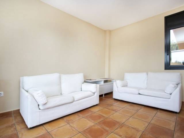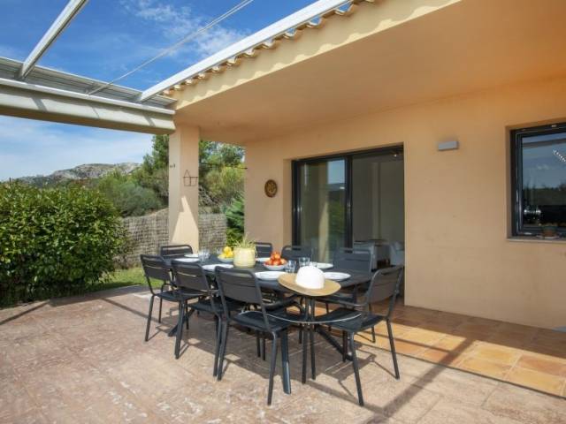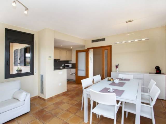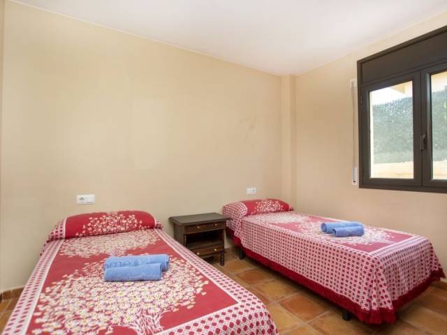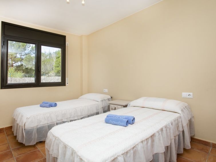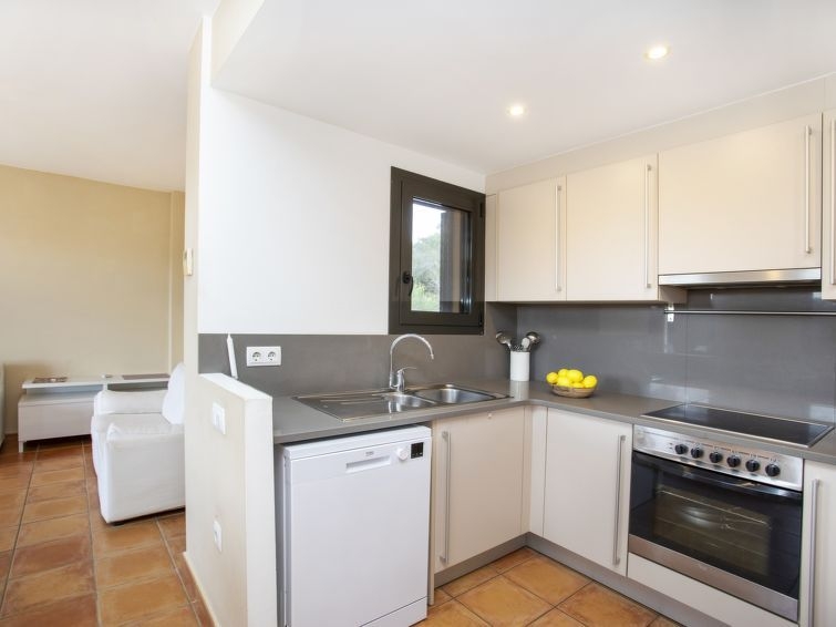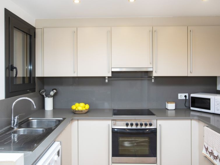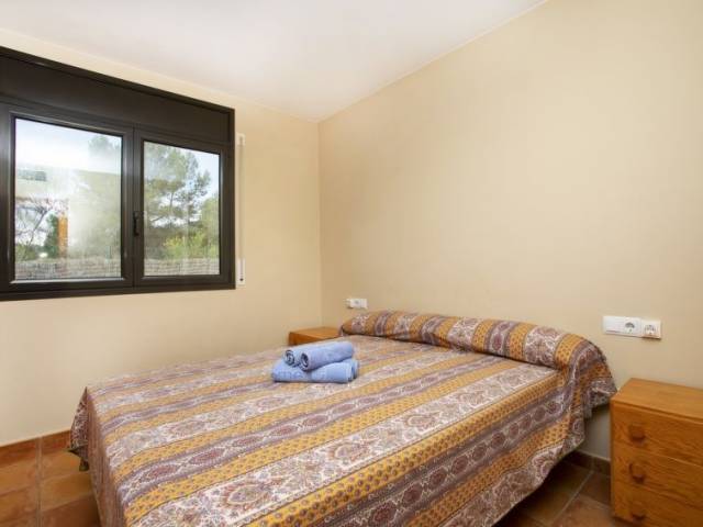 Casa 4 estancias 129 m2, en planta baja. Con mobiliario confortable y agradable: entrada. Salón-comedor con TV digital. Salida a la terraza-jardín. 1 dorm. con 1 cama de matrimonio (150 cm, 190 cm de longitud), baño/bidet/WC. 2 dorm., cada habitación con 2 camas (90 cm, 190 cm de longitud). Cocina abierta (horno, lavavajillas, 4 placas de vitrocerámica, tostadora, hervidor de agua eléctrico, microondas, cafetera eléctrica). Ducha/WC. Calentador (80 litros). Ningún tipo de calefacción. Muebles de terraza. El alojamiento dispone de: lavadora, plancha, secador de pelo. A tener en cuenta: casa para no fumadores. TV solamente ES. R000000001