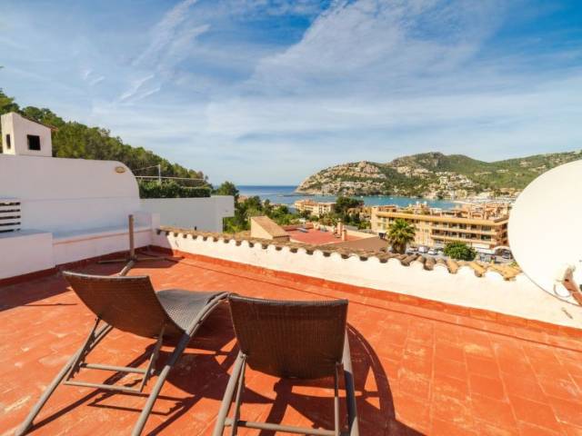 Port d'Andratx: Casa semiadosada "El Mirador", amplia, agradable de 2 plantas, adosada por un lado. En el centro, lugar soleado, elevado, excelente situación: muy céntrica pero tranquila, a 250 m de un bosque, a 350 m del mar, a 1.5 km de la playa. En el inmueble: acceso a internet, Wifi, sala para guardar bicicleta, lavadora. Aparcamiento junto a la casa, parking público, posibilidad de aparcamiento en la calle. Tienda 350 m, supermercado 230 m, centro comercial 30 km, restaurante 250 m, bar 220 m, panadería, zona peatonal 300 m, alquiler de bicicletas 350 m, bar al aire libre 280 m, a 4 minutos del centro andando, parada de autobús 500 m, estación de tren "Andratx" 5 km, playa de arena "Cala Blanca" 2 km, playa rocosa 350 m. Puerto deportivo, puerto para yates 380 m, campo de golf (18 hoyos) 4.5 km, rutas de senderismo desde la casa, caminos para bicicletas 500 m. Atracciones en los alrededores: Pueblos,Sant Elm,Arracó,Andratx,Calvià. Cala Blanca, Cala Llamp, Camp de Mar, Palma de Mallorca, Isla de Sa Dragonera. Zona de senderismo Sant Elm - La Trapa. Parc Natural Sa Dragonera. A tener en cuenta: adecuado para familias, adecuado para la tercera edad. Vivienda adecuada para 6 adultos grupos de jóvenes sólo bajo petición. Aeropuerto 39 km de la casa.