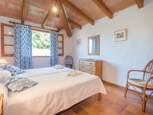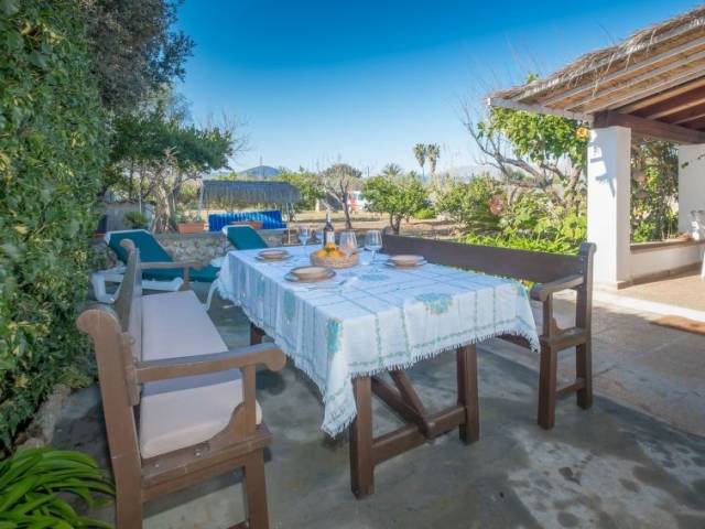 Casa unifamiliar "Can Niu", rústica, confortable, reformada, rodeada de árboles. A 3 km del centro de Pollença, en las afueras de la localidad, lugar soleado, a 2 km del mar, a 2 km de la playa. Privado: terreno 1'200 m2 (vallada), jardín plantas y flores, terreno con árboles frutales. Terraza-jardín, muebles de jardín, barbacoa. En el inmueble: acceso a internet, Wifi, aire acondicionado, lavadora. Aparcamiento en el mismo terreno. Tienda de comestibles 2.6 km, supermercado 2.6 km, centro comercial 2.6 km, restaurante 2 km, parada de autobús 2 km, playa de arena 2 km, playa de piedras 2 km, piscina 4 km. Puerto deportivo 7.6 km, puerto para yates 7.6 km, campo de golf (18 hoyos) 7.6 km, tenis 4 km, centro ecuestre 4.5 km. Vivienda adecuada para 4 adultos grupos de jóvenes sólo bajo petición.