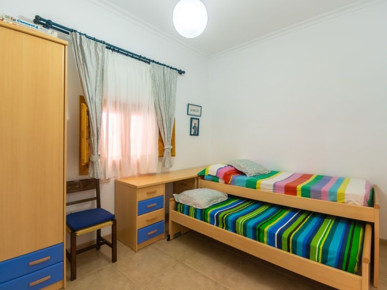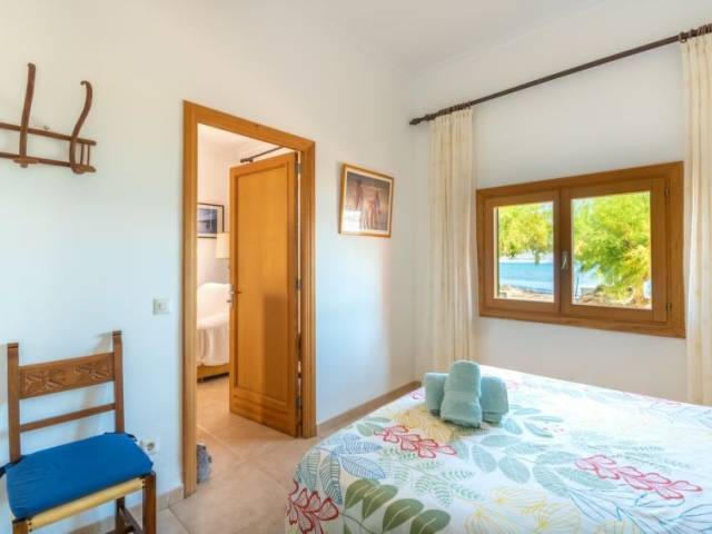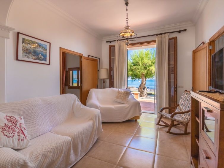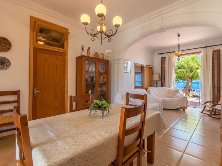 "Sa Marina", casa 5 estancias 135 m2, en planta baja. Vivienda adecuada para 6 adultos. Luminoso, reformada, con mobiliario funcional y bonito: salón-comedor con ventanal con mesa de comedor, TV digital y pantalla plana. Salida a la terraza. 2 dorm. dobles, grandes con ventanal, cada habitación con 1 cama de matrimonio (150 cm, 200 cm de longitud). 1 dorm. doble, grande con 2 camas (90 cm, 190 cm de longitud). Sala de estar. Cocina-comedor (5 fogones, horno, lavavajillas, microondas, congelador, cafetera eléctrica) con mesa de comedor. Salida a la terraza. Ducha, ducha/WC, WC separado. Ningún tipo de calefacción. Terraza grande, cenador. Muebles de terraza, muebles de balcón, tumbonas (3), porche, trastero. Vista panorámica espléndida al mar, a las montañas, a la localidad y a la bahía. El alojamiento dispone de: lavadora, plancha, trona, cuna, secador de pelo. Internet (Wifi, gratis). Adecuado para familias. ETVPL13153