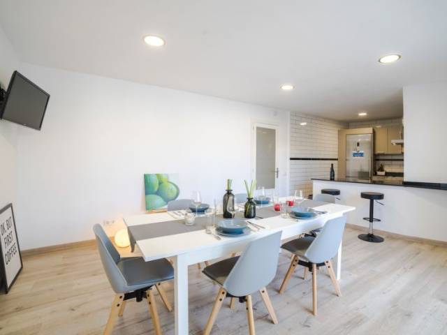 "Can Josep", apartamento de 4 estancias 125 m2 en el 1° piso. Vivienda adecuada para 6 adultos. Espacioso y luminoso, completamente reformado, con mobiliario muy confortable y agradable: salón-comedor grande con ventanal con chimenea, TV digital, pantalla plana, aire acondicionado y bomba de calor, caliente. 1 dorm. doble, grande con ventanal con 1 cama de matrimonio (150 cm, 190 cm de longitud), aire acondicionado y bomba de calor, caliente. 1 dorm. doble, grande con ventanal con 2 camas (90 cm, 190 cm de longitud), aire acondicionado y bomba de calor, caliente. 1 dorm. doble, grande con ventanal con 1 cama de matrimonio (150 cm, 190 cm de longitud), aire acondicionado y bomba de calor, caliente. Cocina-comedor (horno, lavavajillas, 4 placas de vitrocerámica, tostadora, hervidor de agua eléctrico, microondas, congelador, cafetera eléctrica) con barra americana, mesa de comedor, TV, pantalla plana, aire acondicionado y bomba de calor, caliente. Salida a la terraza. 2 baños/duchas/WC. Terraza. Muebles de terraza. El alojamiento dispone de: lavadora, plancha, trona, cuna, secador de pelo. Internet (Wifi, gratis). Adecuado para familias. L26E163182019