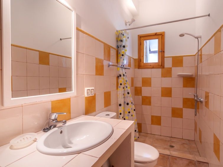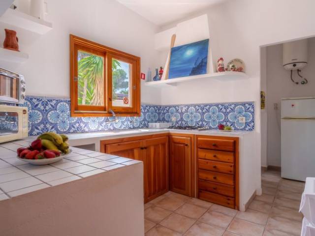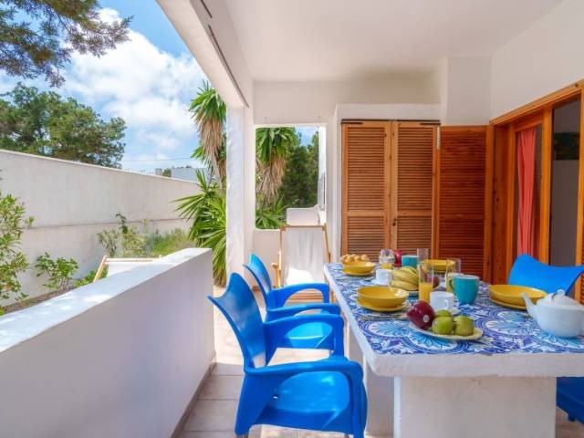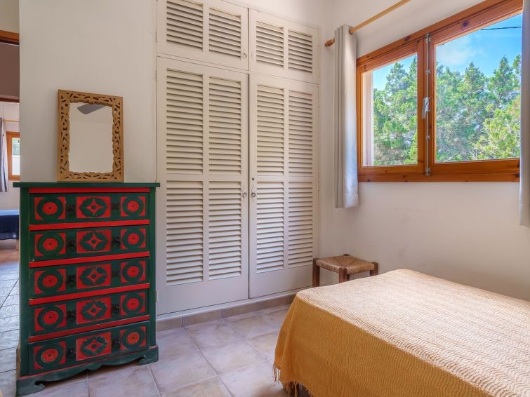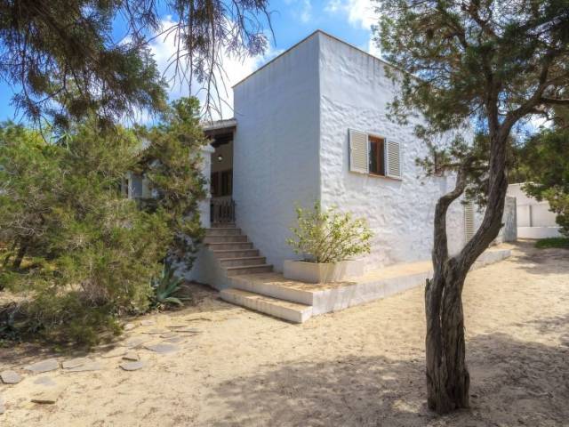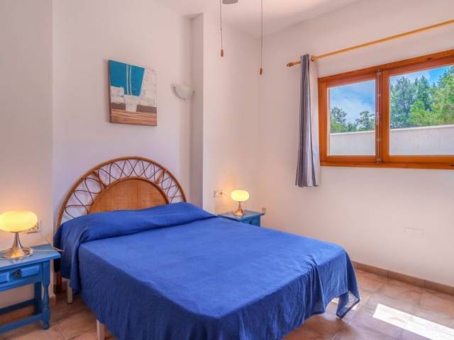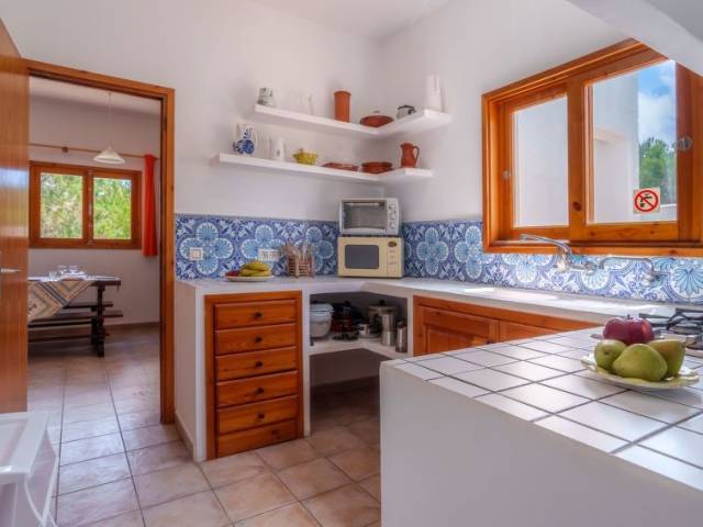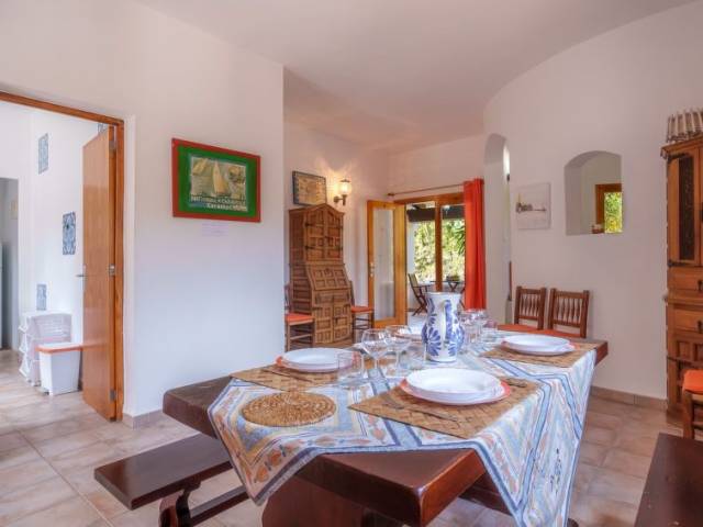Es Pujols: Casa "Pitiusa", agradable, rústica. En la localidad Es Pujols, lugar céntrico, soleado, a 500 m del mar, a 500 m de la playa. Privado: terreno en estado natural, jardín natural, terreno con hierba. Terraza-jardín, porche, muebles de jardín, barbacoa. En el inmueble: acceso a internet, Wifi, lavadora. Aparcamiento en el mismo terreno. Tienda, tienda de comestibles, supermercado, bar, panadería 300 m, café 30 m, bar al aire libre 300 m, playa de arena "Platja des Pujols" 500 m. Atracciones en los alrededores: Cala en Baster 3 km, Torre de sa Punta Prima 3 km. A tener en cuenta: adecuado para familias, adecuado para la tercera edad. El propietario no acepta grupos de adolescentes/jóvenes. Carga y descarga de equipaje posible en la casa de vacaciones. "Es Pujols", casa 5 estancias 100 m2. Vivienda adecuada para 6 adultos. Con mobiliario funcional y agradable: comedor abierto grande con mesa de comedor, TV digital y ventilador. Salida a la terraza-jardín. 1 dorm. doble, grande con 1 cama de matrimonio (150 cm, 200 cm de longitud), ventilador. 1 dorm. doble, grande con 2 camas (90 cm, 200 cm de longitud), ventilador. 1 dorm. doble, grande con 1 cama de matrimonio (150 cm, 200 cm de longitud), ventilador. Cocina (3 fogones, horno, lavavajillas, tostadora, hervidor de agua eléctrico, microondas, congelador, cafetera eléctrica). 2 ducha/WC. Vista al mar, al jardín, al paisaje, a la localidad y al bosque. El alojamiento dispone de: lavadora, plancha, trona, cuna hasta 2 años, secador de pelo. Internet (Wifi, gratis). Adecuado para familias. ET7554