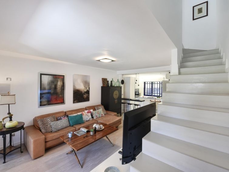 "Duplex Meloneras Bahia AA153", casa 4 estancias 140 m2. Con mobiliario confortable y moderno: salón con TV digital y aire acondicionado. Salida a la terraza-jardín. Cocina-comedor (horno, lavavajillas, 3 placas de vitrocerámica, tostadora, hervidor de agua eléctrico, microondas, congelador, cafetera eléctrica) con mesa de comedor. En planta inferior: sala de estar con TV digital. 1 dorm. con 2 camas. Ducha/WC. Planta superior: 1 dorm. con 1 cama de matrimonio y aire acondicionado. Salida al balcón. 1 dorm. con 2 camas y aire acondicionado. Ducha/WC. Terraza-jardín. Muebles de terraza, muebles de balcón, tumbonas. Vista a la localidad. El alojamiento dispone de: lavadora, caja fuerte, plancha, trona, cuna hasta 2 años, secador de pelo. Internet (Wifi, gratis). A tener en cuenta: casa para no fumadores. 2023-T7319