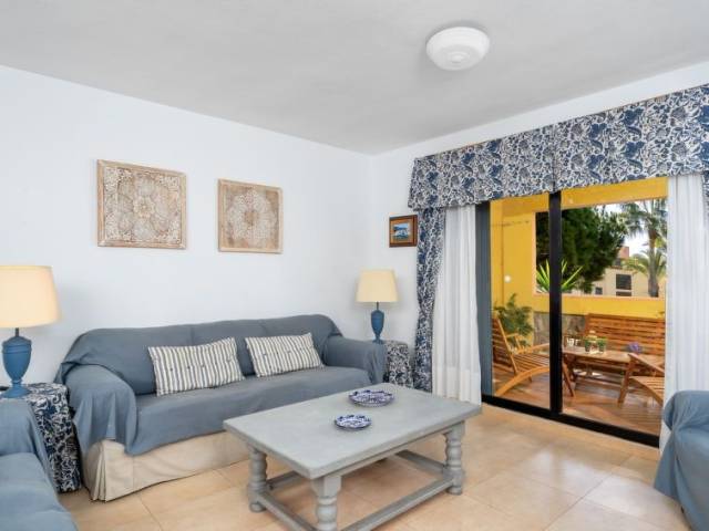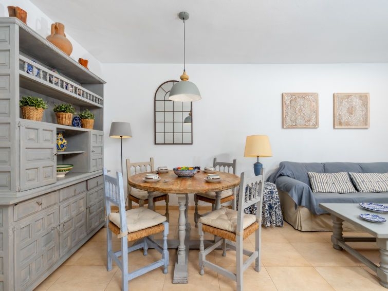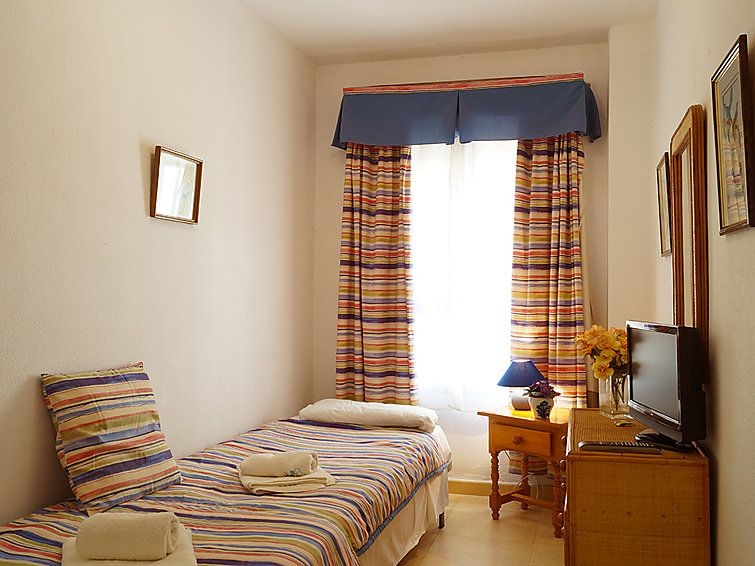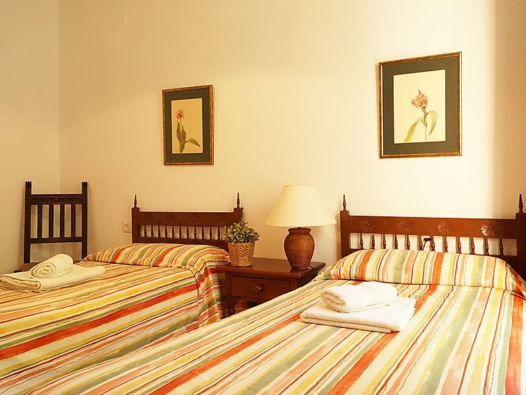 "Dona Lola", apartamento de 4 estancias 100 m2, en la planta baja. Con mobiliario sencillo y agradable: salón-comedor con mesa de comedor, TV digital, DVD, aire acondicionado y bomba de calor, caliente. Salida a la terraza. 1 dorm. con 2 camas (90 cm, 190 cm de longitud), TV, DVD, aire acondicionado y bomba de calor, caliente. 1 dorm., pequeño con 2 camas (90 cm). 1 dorm. doble con 2 camas (80 cm). Cocina (4 fogones, horno, lavavajillas, microondas). 2 baño/bidet/WC. Calefacción eléctrica. Muebles de terraza. Vista a la piscina. El alojamiento dispone de: lavadora, plancha, trona, cuna, secador de pelo. El balcón del apartamento da a una piscina con entrada permitida solo a adultos. VFT/MA/08881