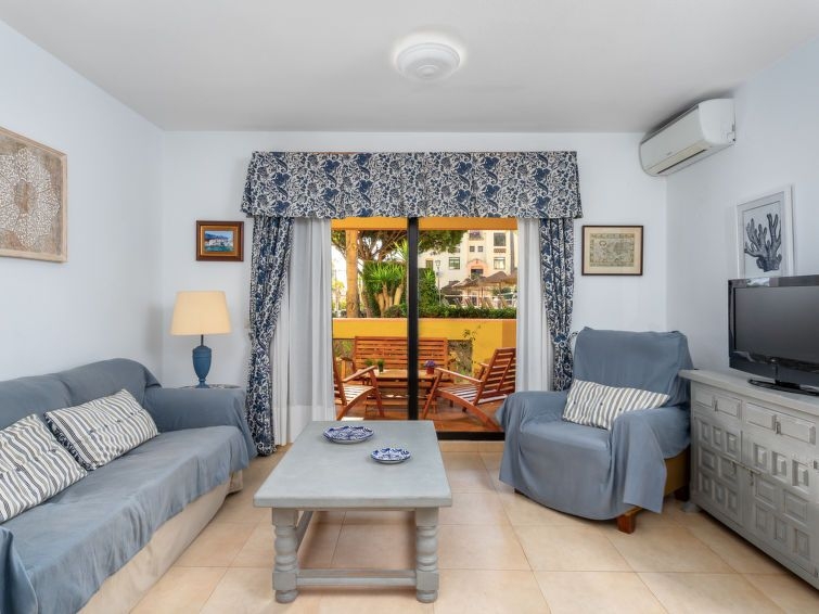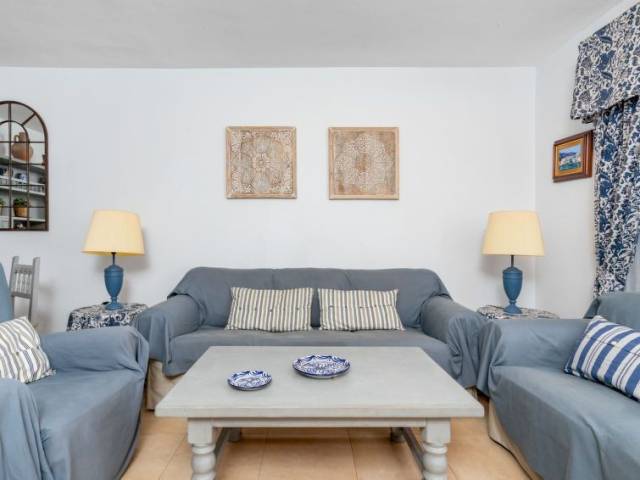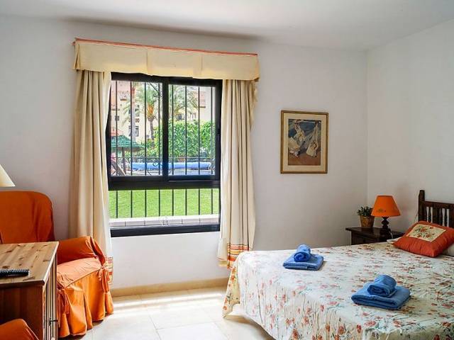Calahonda a 15 km de Marbella: Resort "Dona Lola", idóneo para niños. Lugar céntrico, tranquilo, a 200 m del mar, a 200 m de la playa. Comunitario: piscina (Disponible por temporada: 01.Ene. - 31.Dic.). Piscina para niños, ducha exterior, tenis (extra), tenis de mesa, parque infantil. En el complejo: recepción, restaurante, bar, bar, tienda, quiosco, lavandería. Acceso por escaleras (15 escalones) hasta la casa. Tienda 50 m, supermercado 400 m, centro comercial 200 m, restaurante, bar, café 20 m. A tener en cuenta: animación en la temporada. Vivienda adecuada para 6 adultos + 2 niños. Vigilancia nocturna. Extra: 2 piscinas climatizadas (interior y exterior), 1 piscina exterior, bañera de hidromasaje, baño turco, sauna, gimnasio y clases de aquagym.