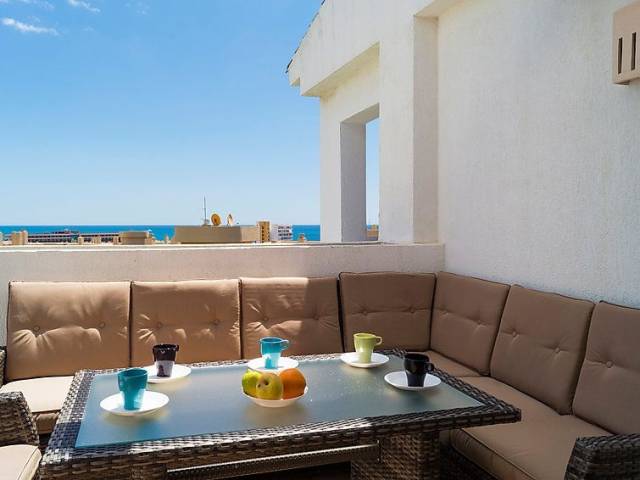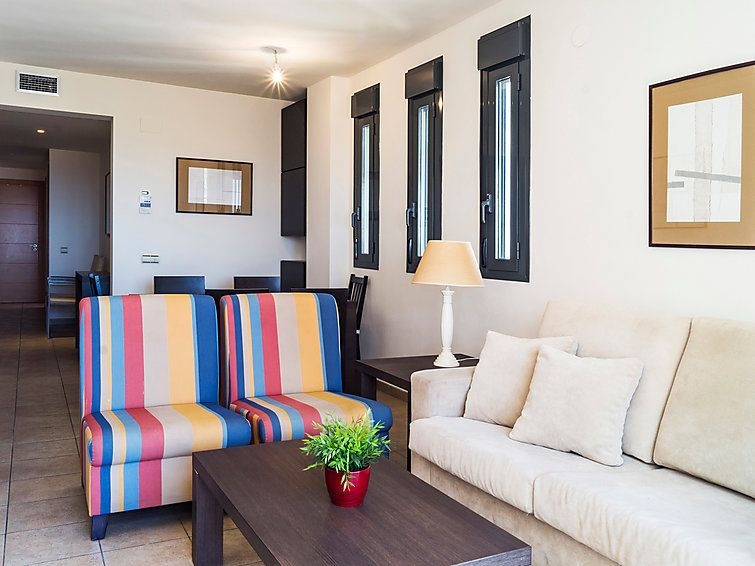 "Alamar", apartamento de 4 estancias 100 m2 en el 3° piso, orientación sureste. Vivienda adecuada para 6 adultos. Con mobiliario confortable y bonito: salón-comedor con TV digital, canales internacionales, calefacción eléctrica y aire acondicionado. Salida a la terraza. 1 dorm. con 1 cama de matrimonio, lavabo, bidet, WC separado, ducha hidromasaje, calefacción eléctrica y aire acondicionado. 1 dorm. con 2 camas, calefacción eléctrica y aire acondicionado. 1 dorm. con 2 camas, calefacción eléctrica y aire acondicionado con lavabo y ducha/WC. (horno, lavavajillas, 4 placas de vitrocerámica, microondas, congelador, cafetera eléctrica). Terraza 8 m2. Muebles de terraza. Vista panorámica muy bonita. El alojamiento dispone de: lavadora. Internet (Wifi, gratis). Plaza de aparcamiento. A tener en cuenta: apartamento para no fumadores. VFT/MA/03992