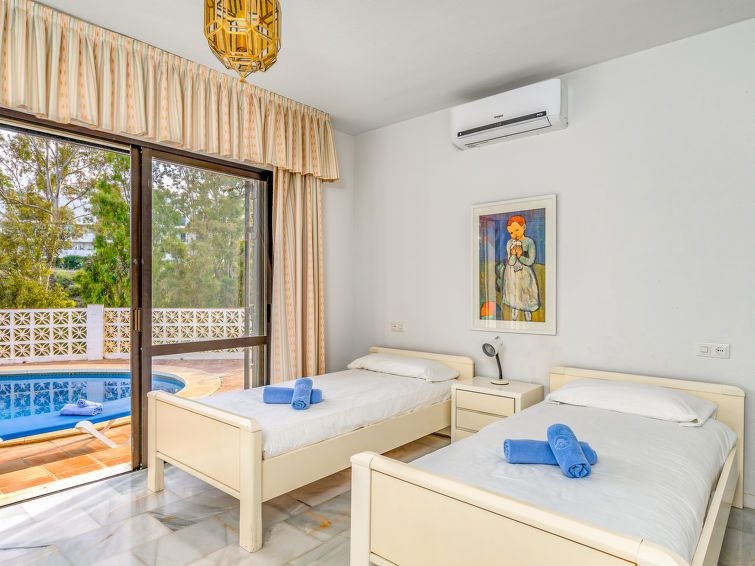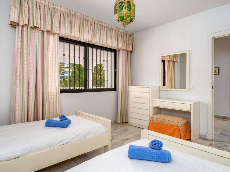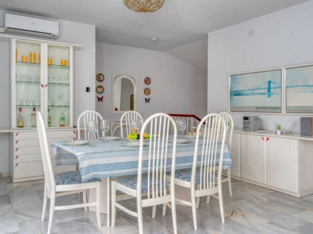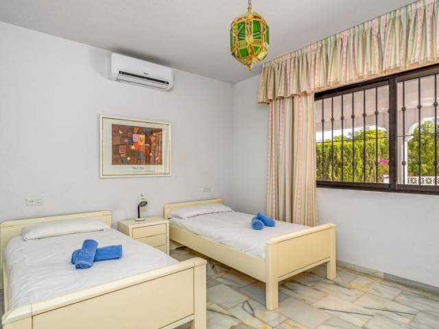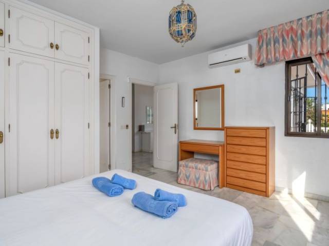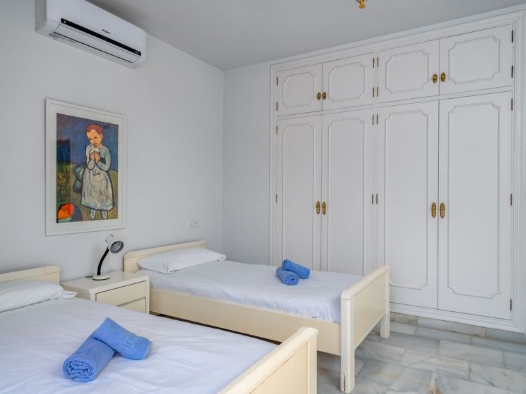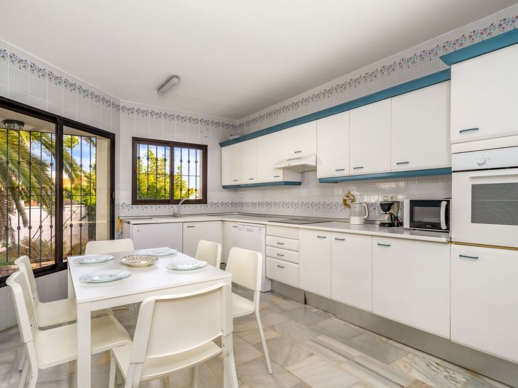 Torrenueva: Villa "Querida" del año 1988. En la periferia, a 1.5 km del centro de La cala de Mijas, a 700 m del mar, en una calle sin salida. Comunitario: tenis (extra). Privado: terreno 1'000 m2 (vallada), jardín con césped y flores, piscina en forma de riñon (12 x 5 m, 80 - 200 cm de profundidad, Disponible por temporada: 01.Ene. - 31.Dic.). Tienda de comestibles 600 m, restaurante, bar 500 m, playa de arena "El Bombo" 700 m. Casa 4 estancias 140 m2 en 3 plantas. Con mobiliario sencillo y confortable: cocina (4 fogones, horno, lavavajillas, 4 placas de vitrocerámica, tostadora, hervidor de agua eléctrico, congelador, cafetera eléctrica) con mesa de comedor. Ducha/WC. Ningún tipo de calefacción. En planta inferior: 2 dorm., cada habitación con 2 camas (90 cm, 200 cm de longitud), ventilador. Baño/bidet/WC. Planta superior: salón-comedor con TV satélite y aire acondicionado. Salida a la terraza. 1 dorm. con 1 cama doble (180 cm, 200 cm de longitud), baño/bidet/WC (privado) aire acondicionado. Terraza 40 m2, terraza 50 m2 parcialmente cubierta. Muebles de terraza, barbacoa, tumbonas (6). Vista a la piscina y al jardín. El alojamiento dispone de: lavadora, plancha, trona, cuna, secador de pelo. Internet (Wifi, gratis). VFT/MA/01028