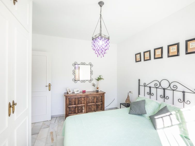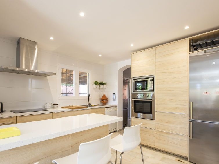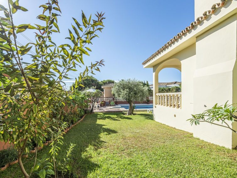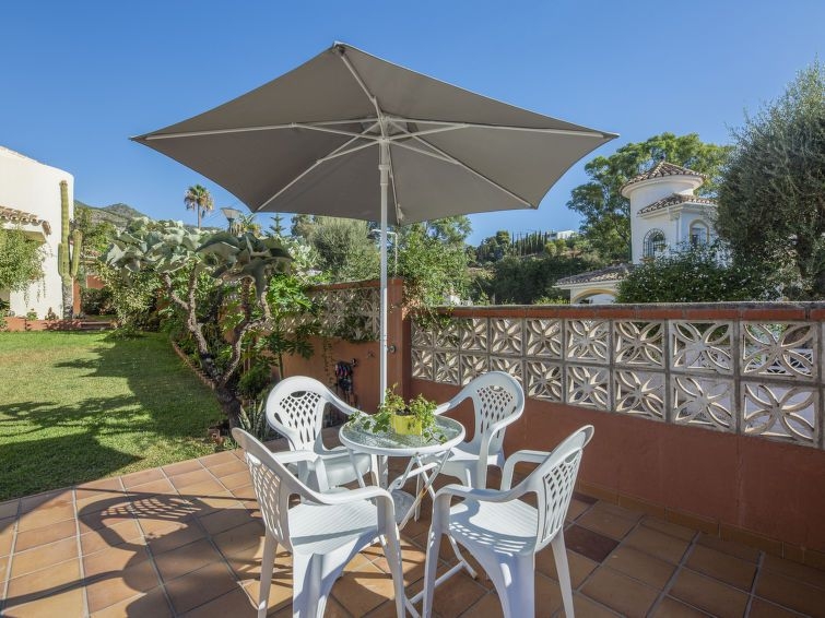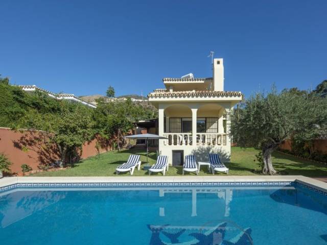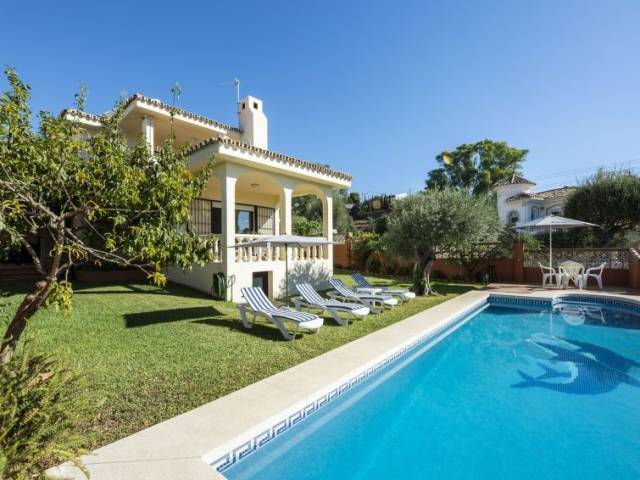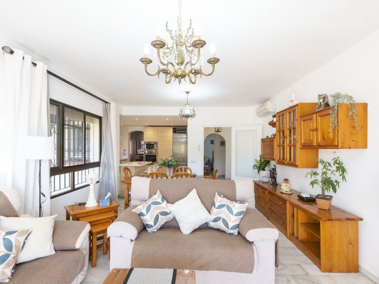Benalmadena Costa: Villa agradable, confortable de 2 plantas. Situado en urbanizacion:Santana, lugar tranquilo area residencial (villas), a 1.9 km del mar, a 1.9 km de la playa. Privado: terreno, jardín, piscina rectangular (4 x 9 m, Disponible por temporada: 01.Ene. - 31.Dic.). Ducha/WC en zona de piscina, aparcamiento junto a la casa. Supermercado 3 km, restaurante 3 km, bar 3 km, estación de tren 1.6 km. Puerto deportivo 8 km, campo de golf 4 km. Atracciones en los alrededores: Golf Torrequebrada, Selwo Marina, Puerto Marina, Sea Life, Malaga 28 km, Fuengirola 10 km. Vivienda adecuada para 6 adultos. El propietario no acepta grupos de adolescentes/jóvenes. A tener en cuenta: la entrega de llaves se realiza por la agencia Interhome en Torremolinos. Aeropuerto 17 km de la casa. "Villa Amapola", villa 4 estancias 253 m2. Vivienda adecuada para 6 adultos. Con mobiliario confortable y bonito: salón-comedor con TV satélite (pantalla plana). Salida a la terraza, a la piscina. 1 dorm. doble con 1 cama (135 cm). Cocina (lavavajillas, 3 placas de vitrocerámica, tostadora, hervidor de agua eléctrico, microondas, cafetera eléctrica). Baño/WC. Planta superior: 1 dorm. doble con 1 cama de matrimonio (150 cm). 1 dorm. doble con 2 camas (90 cm). Baño/WC. Terraza-jardín. Muebles de terraza, barbacoa, tumbonas, porche. Vista panorámica a las montañas, a la piscina, al jardín y al paisaje. El alojamiento dispone de: lavadora, plancha, secador de pelo. Internet (Wifi, gratis). Garaje en el mismo terreno. Adecuado para familias. VFT/MA/056875