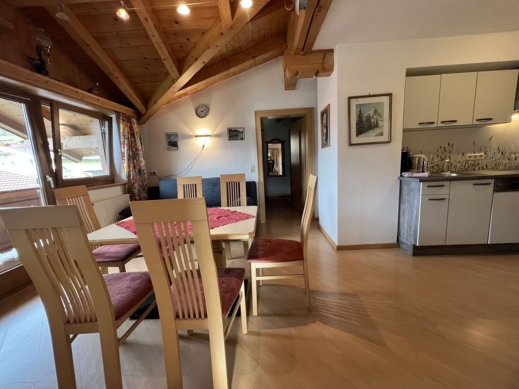 Apartamento de 3 estancias 50 m2 en el 2° piso. Parcialmente abuhardillado, con mobiliario agradable: entrada. 2 dorm. dobles. Cocina-comedor (lavavajillas, 4 placas de vitrocerámica, tostadora, hervidor de agua eléctrico, microondas, cafetera eléctrica) con 1 sofá-cama doble, mesa de comedor y TV cable. Salida al balcón. Ducha, WC separado. Muebles de balcón. Vista lateral a las montañas. El alojamiento dispone de: trona, cuna (extra). Internet (Wifi, gratis). A tener en cuenta: apartamento para no fumadores. Permitido máximo 2 mascotas / perros. 50616-000107-2020