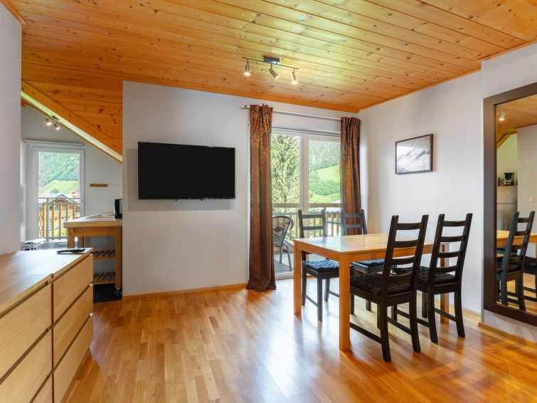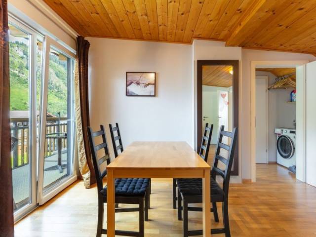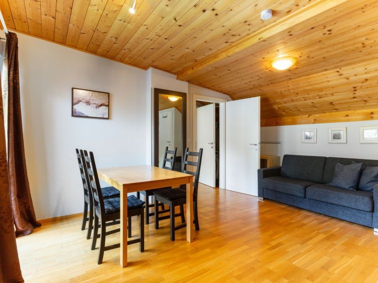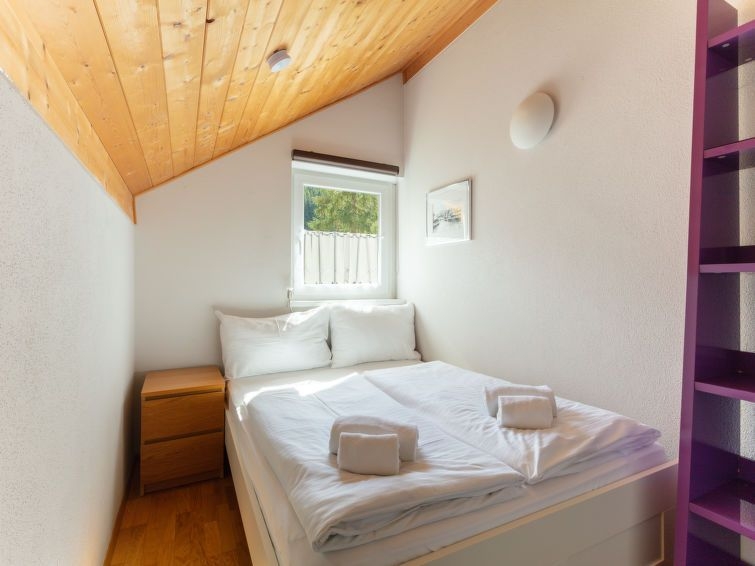 Apartamento de 3 estancias 45 m2 en el 2° piso. Luminoso, abuhardillado, con mobiliario moderno y agradable: salón-comedor con 1 cama-nido (2 pers.), mesa de comedor y TV satélite (pantalla plana). Salida al balcón. 1 dorm., pequeño con 1 cama doble (1 x 140 cm, 200 cm de longitud). 1 dorm. con 1 cama doble (1 x 180 cm, 200 cm de longitud). Salida al balcón. Cocina abierta (horno, lavavajillas, 4 placas de vitrocerámica, microondas). Ducha/WC. Balcón grande 7 m2. Muebles de balcón. Vista bonita a las montañas. El alojamiento dispone de: lavadora, secadora, trona, cuna hasta 2 años (extra), secador de pelo. Internet (Wifi, extra). A tener en cuenta: apartamento para no fumadores. 1 mascota / perro. 50617-000335-2020