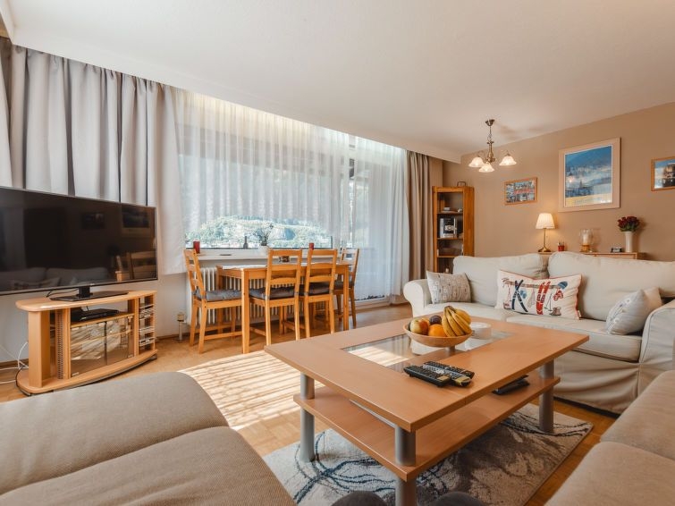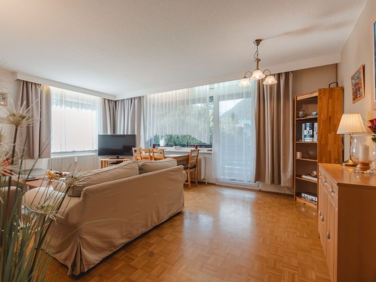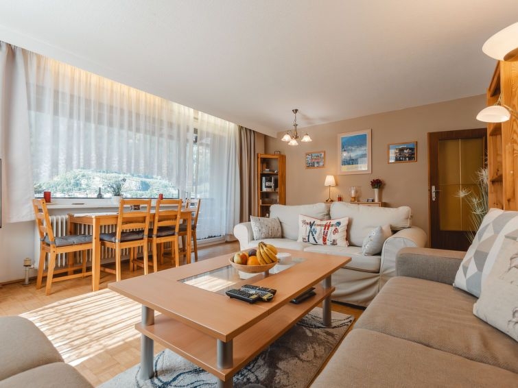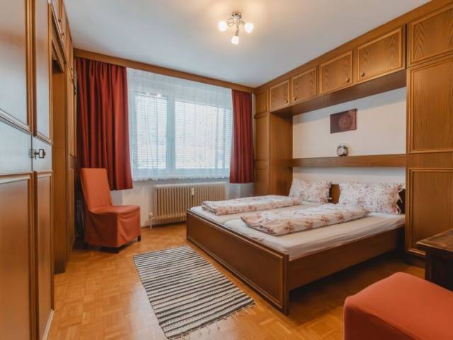 Apartamento de 3 estancias 80 m2 en el 4° piso. Con mobiliario agradable: entrada. Salón-dormitorio con 1 sofá-cama doble, mesa de comedor, TV satélite, radio y DVD. Salida al balcón. 1 dorm. doble. 1 dorm. con 2 camas y radio. Cocina (4 fogones, horno, lavavajillas, tostadora, hervidor de agua eléctrico, microondas, cafetera eléctrica). Baño, WC separado. Balcón. Muebles de terraza, tumbonas. Vista muy bonita a las montañas y al valle. El alojamiento dispone de: Internet (Wifi, gratis). Garaje. A tener en cuenta: apartamento para no fumadores. Detector de humo. 50403-000407-2020
