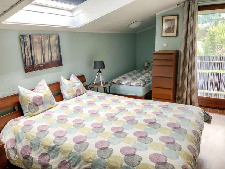 Apartamento de 3 estancias 91 m2 en el 2° piso. Espacioso y luminoso, reformado en 2013, con mobiliario agradable: entrada. Salón-comedor abuhardillado con mesa de comedor y TV satélite (pantalla plana), radio, CD y DVD. Salida al balcón. 2 dorm., abuhardillados, cada habitación con 1 cama y 1 cama doble. Cocina abierta (horno, lavavajillas, 4 placas de vitrocerámica, tostadora, hervidor de agua eléctrico, microondas, cafetera eléctrica). Ducha/WC, baño/ducha/WC. Balcón 10 m2. Muebles de balcón. Vista bonita a las montañas. El alojamiento dispone de: lavadora, secadora. Internet (Wifi, gratis). A tener en cuenta: adecuado para familias. Apartamento para no fumadores. Detector de humo, sin ascensor. 50403-000215-2020