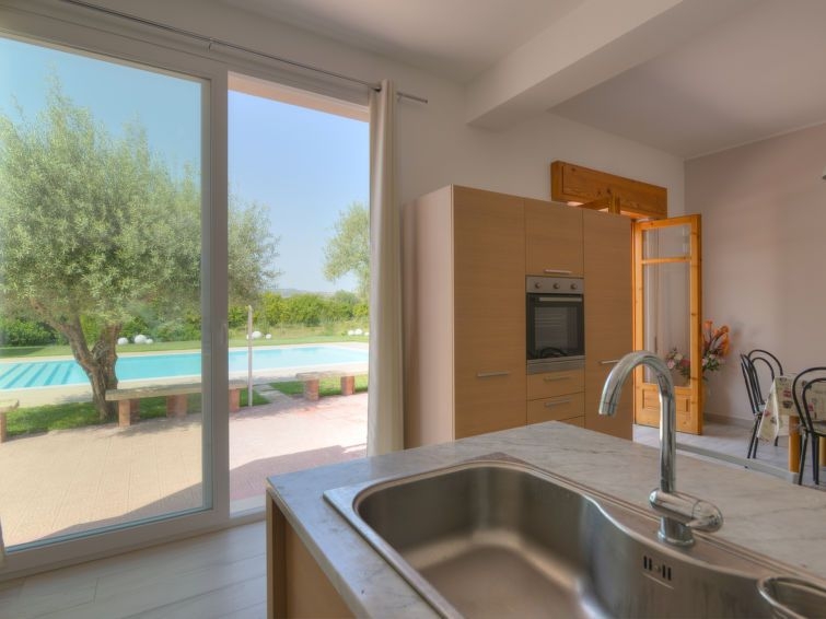 Villa 4 estancias 160 m2. Con mobiliario confortable y de buen gusto: salón-comedor con 1 sofá-cama doble y TV satélite (pantalla plana). 1 dorm. doble con ducha/bidet/WC y TV (pantalla plana), aire acondicionado. 2 dorm. dobles, cada habitación con TV (pantalla plana), aire acondicionado. Cocina (5 fogones, horno, lavavajillas, microondas, congelador). Ducha/bidet/WC. Tumbonas. Vista a la piscina, al jardín y al paisaje. El alojamiento dispone de: lavadora, plancha, trona, cuna hasta 2 años, secador de pelo. Internet (Wifi, gratis). Plaza de aparcamiento (2 Coches). CIR:19089017C205771