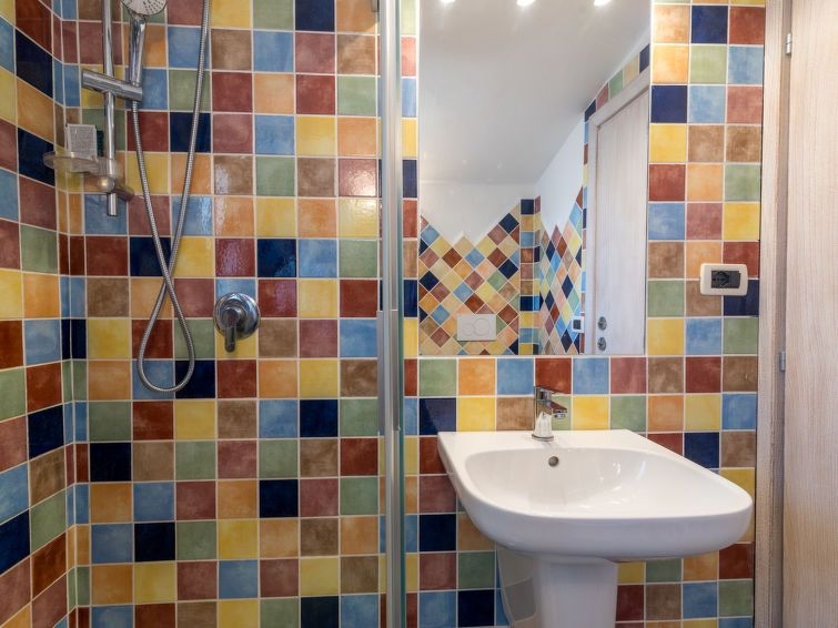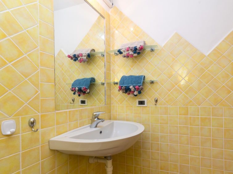 "Donatella", apartamento de 3 estancias 60 m2 en 2 plantas. Parcialmente abuhardillado, con mobiliario sencillo y funcional: salón-comedor con 1 sofá-cama doble, TV digital y aire acondicionado. Salida a la terraza. Rincón-cocina (4 fogones, horno, tostadora, hervidor de agua eléctrico, microondas, congelador). Ducha/bidet/WC. Planta superior: 2 dorm. dobles, pequeños. Ducha/bidet/WC. Aire acondicionado. Terraza. Muebles de terraza, barbacoa. Vista muy bonita al mar. El alojamiento dispone de: lavadora. Adecuado para familias. Q2426