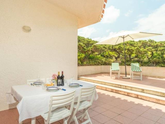 Apartamento de 3 estancias 65 m2, en la planta baja. Salón-comedor con 1 sofá-cama, TV satélite y aire acondicionado. Salida a la terraza. 1 dorm. doble. Salida a la terraza. 1 dorm. con 1 x 2 literas. Salida a la terraza. Cocina (horno, lavavajillas, 4 Placas de inducción, microondas). Salida a la terraza. Ducha/bidet/WC. Terraza parcialmente cubierta. Muebles de terraza, barbacoa, tumbonas (2). El alojamiento dispone de: lavadora. Internet (Wifi, gratis). Q2557