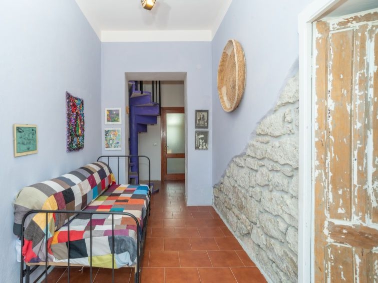 "Camilla", apartamento de 4 estancias 100 m2 en 2 plantas. Con mobiliario sencillo y agradable: comedor con TV. Salida al balcón acristalado. 1 dorm. con 2 camas. Rincón-cocina (4 fogones, horno, lavavajillas, congelador). Ducha/bidet/WC. Planta superior: (escalera de caracol) 1 dorm. doble, grande con aire acondicionado. Salida a la terraza. 1 dorm. con 1 sofá-cama doble. Salida a la terraza. Ducha/bidet/WC, doble lavabo. Terraza pequeña cubierta, jardín. Muebles de balcón, barbacoa (portátil). A tener en cuenta: 1 mascota / perro. Entrada privada. IUN:P6712