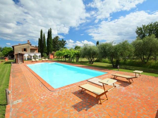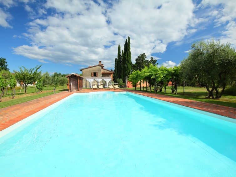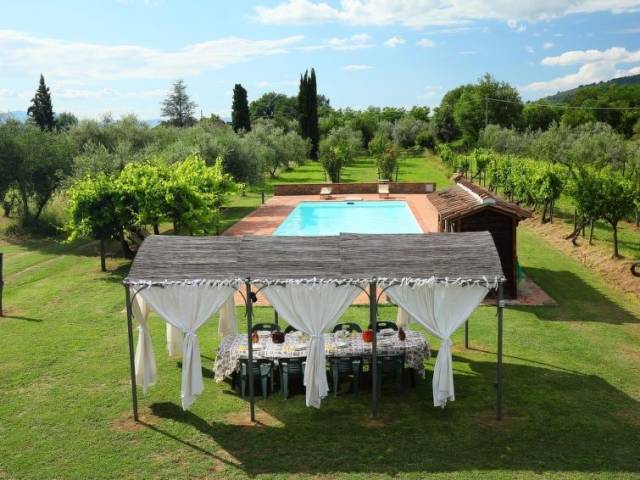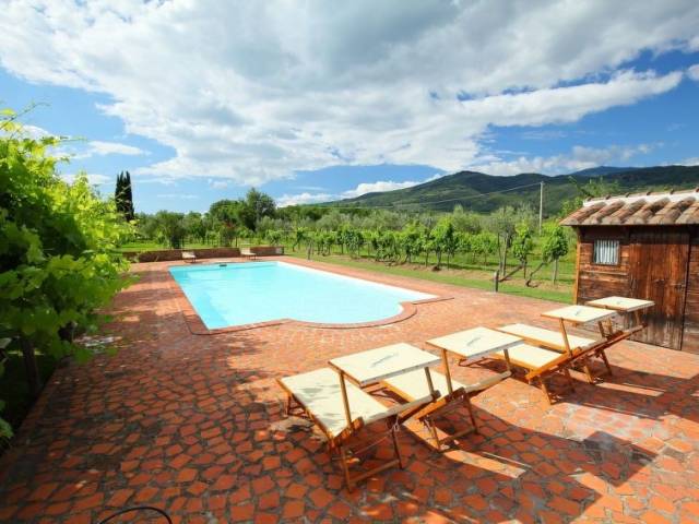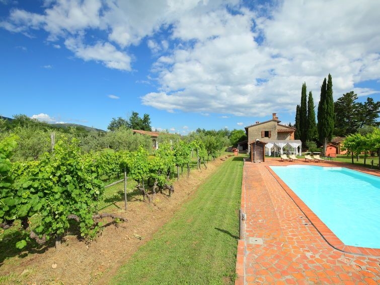 Granja situada a 3 km de Loro Ciuffenna, situación central respecto a las ciudades de arte más importantes de la Toscana y al pie del Pratomagno. La hacienda agrícola es activa y se desarrollan las labores normales del campo, incluyendo la vendimia en la cual pueden participar los huéspedes. La explotación se extiende a lo largo de 5 ha. de viejos olivos y viñas además de huertos con frutas y verdura a disposición de los inquilinos. La casa está dividida en 2 unidades independientes. Nuestro alquiler es una de ellas. Amplio espacio externo. La piscina dispone de cabina y ducha así como espacio externo equipado con cenador y mesa. La calefacción es con estufas y chimeneas. Aparcamiento en el terreno. Casa rural "Campolacconi", antigua, reformada, rodeada de campos. A 3 km del centro de Loro Ciuffenna. Comunitario: terreno 5 ha, terreno con árboles frutales. Privado: piscina (6 x 14 m, 120 - 150 cm de profundidad, Disponible por temporada: 02.May. - 10.Oct.) con escalera interior. Ducha exterior, terraza-jardín, muebles de jardín, barbacoa. En el inmueble: con TV, lavadora. Acceso (1.8 km camino de tierra). Tienda 3 km, parada de autobús 2 km, estación de tren "Montevarchi" 10 km, piscina termal "Rapolano" 55 km. Campo de golf 30 km, tenis 3 km, centro ecuestre 5 km. Atracciones en los alrededores: Gaiole in Chianti 30 km, Greve in Chianti 38 km, Arezzo 42 km, Siena 55 km, Firenze 55 km.