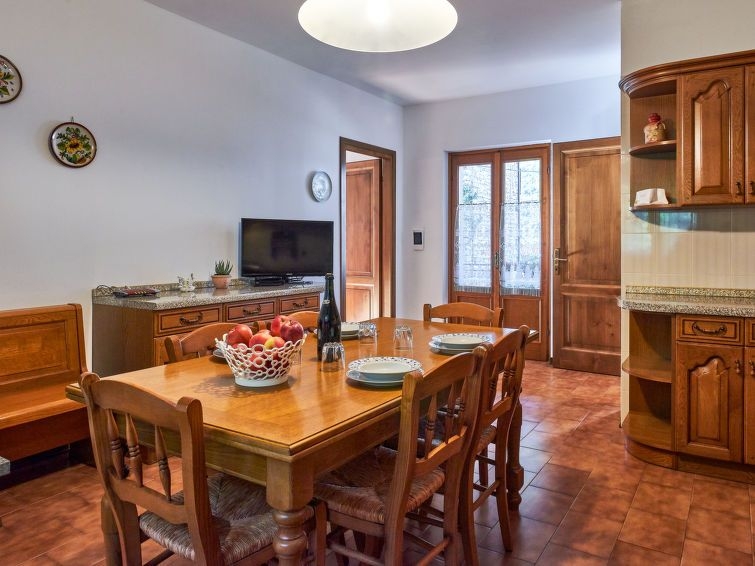 Casa 4 estancias 90 m2. Espacioso, con mobiliario funcional y rústico: salón-dormitorio con 1 cama y chimenea. Salida a la terraza. 1 dorm. doble. Salida al balcón. 1 dorm. con 2 camas. Grande cocina (horno, lavavajillas, Estufa de gas, 4 fuegos, tostadora, microondas, cafetera eléctrica) con mesa de comedor y TV satélite (pantalla plana). Salida a la terraza. Ducha/bidet/WC. Calefacción de gas. Suelo de piedra natural. Balcón pequeño, terraza grande, jardín grande. Muebles de terraza, tumbonas (2). El alojamiento dispone de: trona, cuna hasta 2 años. Internet (Wifi, gratis). A tener en cuenta: casa para no fumadores, aparcamiento para coches pequeños. CIR: 013111-CNI-00014