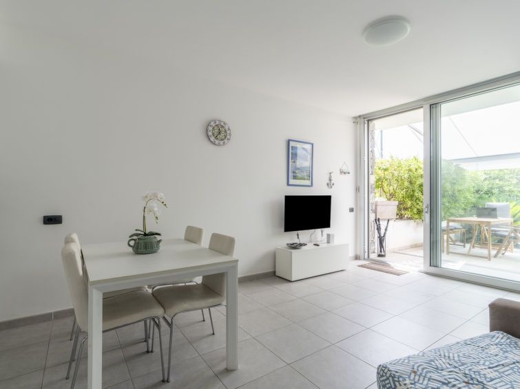 "Creuza de Ma", apartamento de 2 estancias 60 m2 en el 3° piso. Luminoso, con mobiliario agradable: salón-comedor con 1 sofá-cama (90 cm, 200 cm de longitud), 1 sofá-cama doble (140 cm, 200 cm de longitud), TV. Salida al jardín. 1 dorm. doble. Rincón-cocina (horno, lavavajillas, 4 fuegos, tostadora, hervidor de agua eléctrico, microondas, cafetera eléctrica). Salida al jardín. Ducha/bidet/WC. Calefacción de gas, aire acondicionado. Calefacción disponible desde el 01.11. al 08.04. Jardín 25 m2. Muebles de terraza. El alojamiento dispone de: trona, cuna hasta 2 años, secador de pelo. Internet (Wifi, gratis). Garaje n. 1. A tener en cuenta: adecuado para familias. 1 mascota / perro. Entrada privada. CITRA 009001-LT-1169