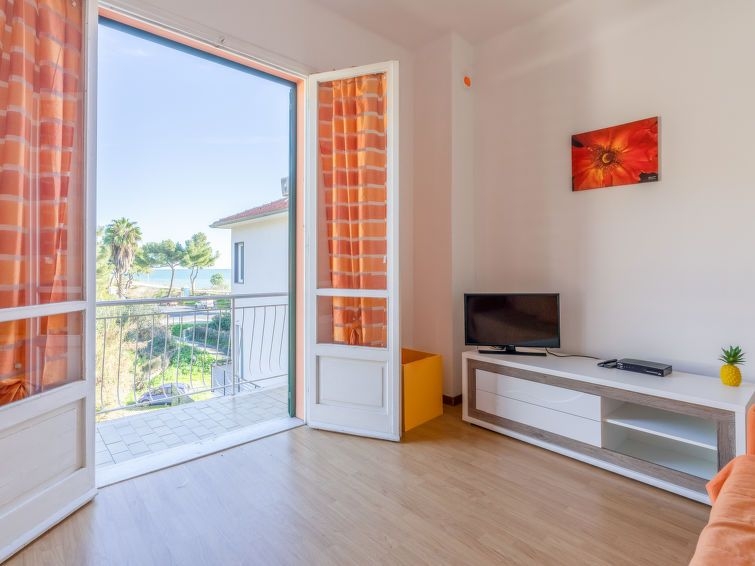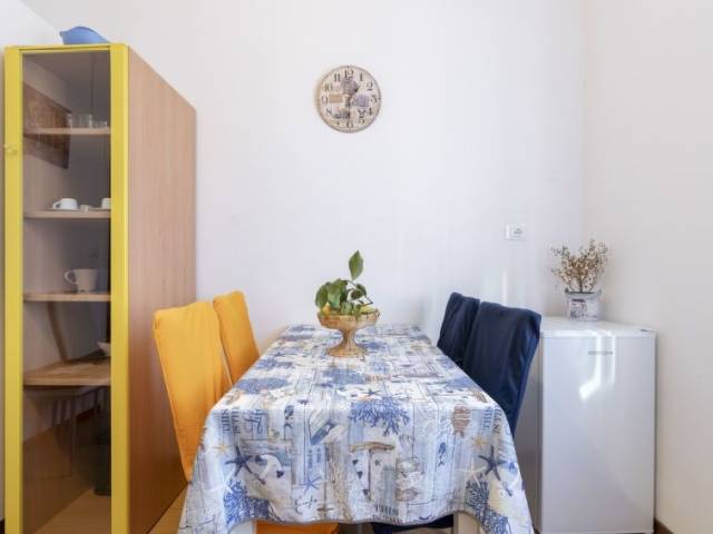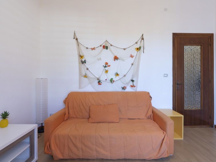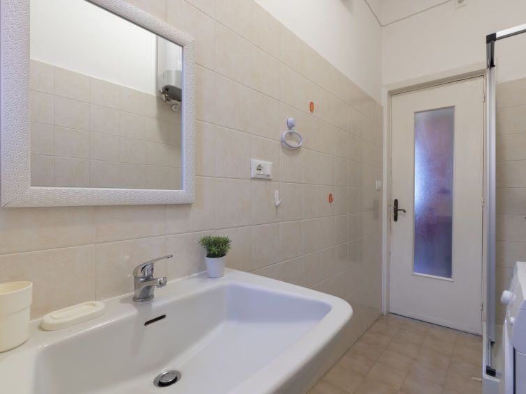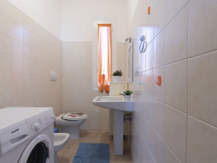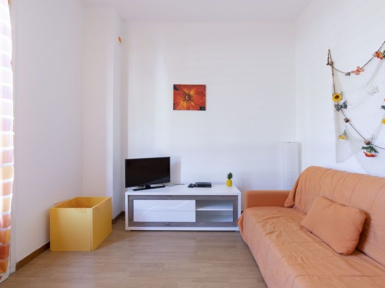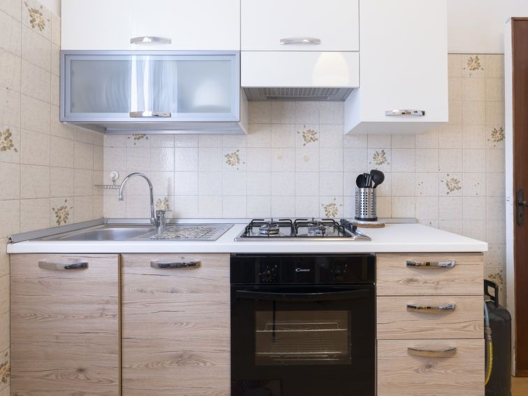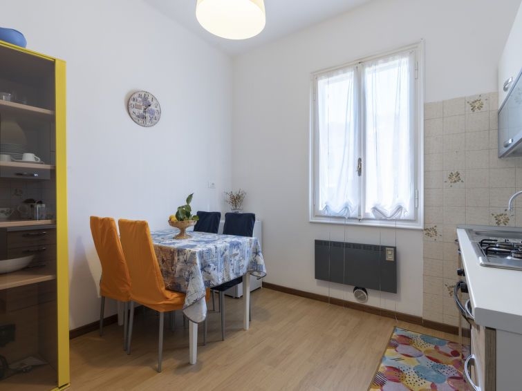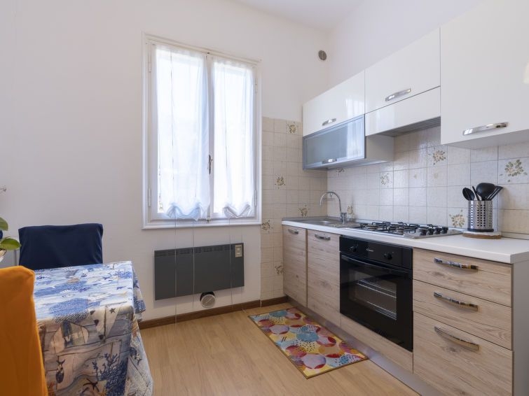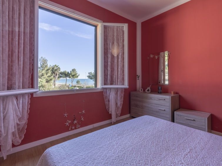 "Felicita", apartamento de 3 estancias 80 m2 en el 2° piso. Luminoso, con mobiliario moderno y de buen gusto: salón-comedor con 1 sofá-cama doble (160 cm, 200 cm de longitud), TV. Salida al balcón. 1 dorm. doble. 1 dorm. con 2 camas (90 cm, 200 cm de longitud). Cocina-comedor (horno, 4 fuegos, tostadora, hervidor de agua eléctrico). Ducha/bidet/WC. Ningún tipo de calefacción. Balcón pequeño 4 m2. Vista bonita al mar y a la localidad. El alojamiento dispone de: lavadora, trona, cuna hasta 2 años, secador de pelo. Internet (Wifi, gratis). 1 mascota / perro. CITRA:008054-LT-0006