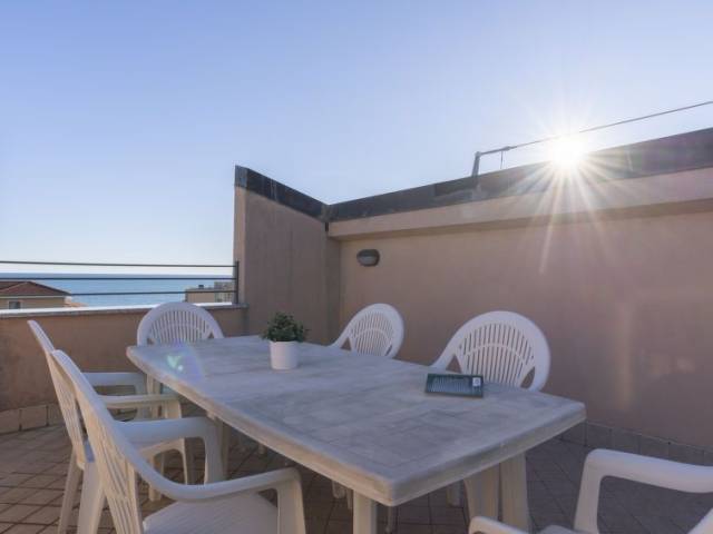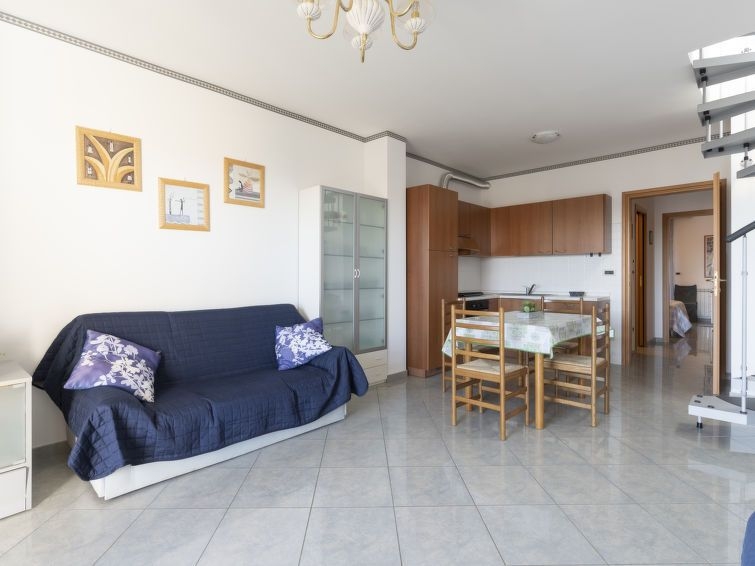 "Il Gabbiano", apartamento de 2 estancias 70 m2 en el 3° piso. Luminoso, con mobiliario agradable: salón-comedor con ventanal con 2 sofás-cama (160 cm, 200 cm de longitud), mesa de comedor, rincón cocina y TV. Salida al balcón. 1 dorm. doble. Salida al balcón. Rincón-cocina (horno, 4 fuegos, tostadora, hervidor de agua eléctrico, cafetera eléctrica). Ducha/bidet/WC. Calefacción de gas. Calefacción disponible desde el 01.11. al 31.03. 2 balcones pequeños 6 m2, terraza grande 100 m2. Muebles de terraza, barbacoa. Vista panorámica bonita al mar y a la localidad. El alojamiento dispone de: lavadora, cuna hasta 2 años, secador de pelo. Internet (Wifi, gratis). Garaje. 1 mascota / perro. No hay que pagar ningún costo adicional en el lugar. La ropa de cama, las toallas, la limpieza final y los gastos de electricidad están incluidos. CITRA 008050-LT-0080