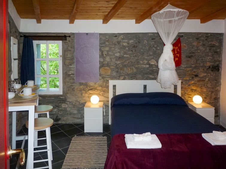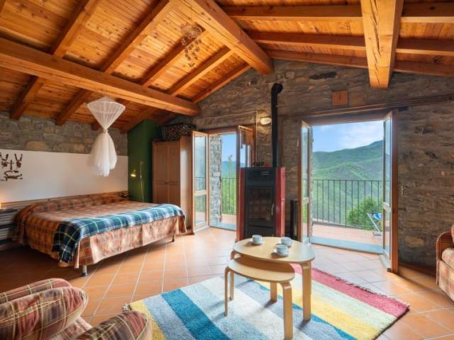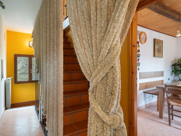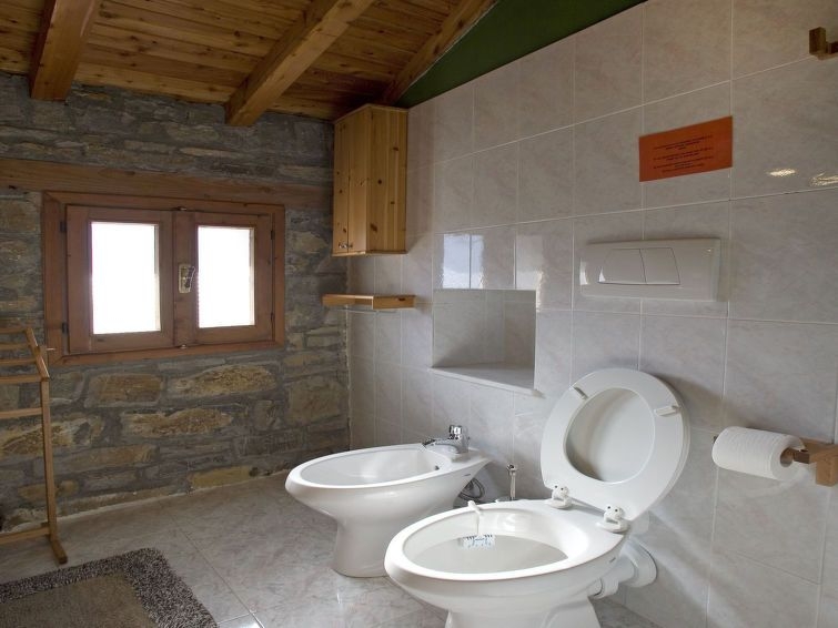 Casa pareada 4 estancias 140 m2 en 2 plantas. Con mobiliario funcional y rústico: 1 dorm. doble. 1 dorm. doble con ducha/bidet/WC. Salida al jardín. Cocina-comedor (horno pequeño, horno, 3 fuegos, hervidor de agua eléctrico, microondas). Salida al balcón. Ducha/bidet/WC. Calefacción de gas, calefacción de leña. Planta superior: 1 dorm. doble con 1 cama (160 cm, 200 cm de longitud), 2 sofás-cama (90 cm, 200 cm de longitud), chiminea nórdica, ducha/bidet/WC, TV y calefacción eléctrica. Salida al balcón. Barbacoa, tumbonas. Vista panorámica muy bonita al paisaje. El alojamiento dispone de: secador de pelo. Internet (Wifi, gratis). A tener en cuenta: 1 mascota / perro. Entrada privada. CITRA:008061-BEB-002