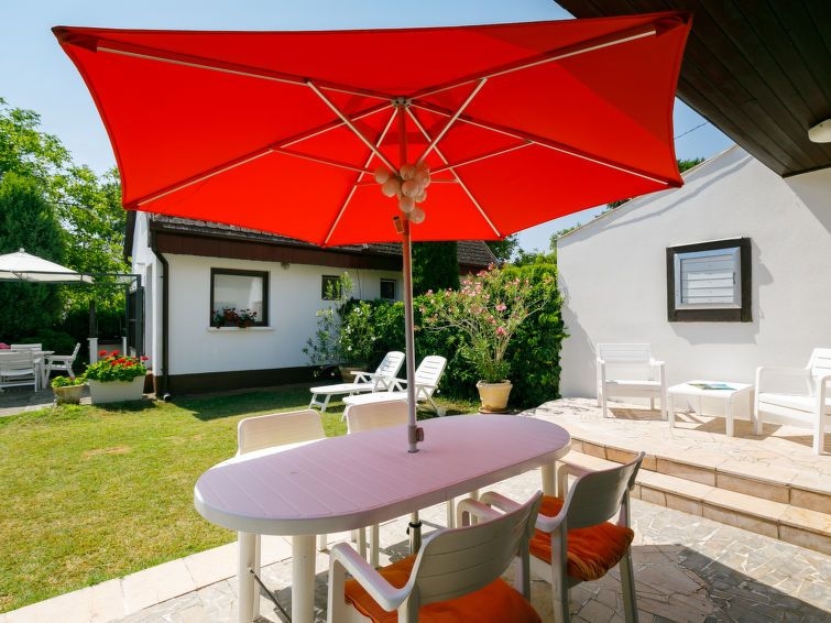 Balatonfenyves a 35 km de Hévíz: Casa semiadosada "Suzy", bonita de 2 plantas, reformada en 2021. En la localidad, a 300 m de un lago. Privado: terreno 400 m2 (vallada), jardín césped y flores. Terraza, barbacoa. En el inmueble: Wifi. Tienda de comestibles 150 m, supermercado 1 km, restaurante, playa de césped 300 m. Puerto para yates 1 km. Atracciones en los alrededores: Beach for dogs 3 km.