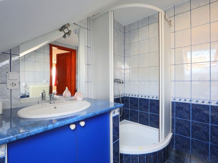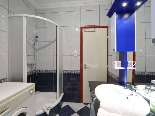 Casa 5 estancias 140 m2. Espacioso, con mobiliario confortable: salón. Salida a la terraza. 2 dorm., cada habitación con 1 cama de matrimonio (180 cm, 200 cm de longitud), TV satélite. Cocina abierta (4 fogones, horno, congelador). Baño/ducha, WC separado. Planta superior: entrada. 1 dorm. con 1 cama de matrimonio (160 cm, 200 cm de longitud), ducha/WC y TV satélite. Salida al balcón. 1 dorm. con 1 cama de matrimonio (140 cm, 200 cm de longitud), ducha/WC y TV satélite. Balcón pequeño, terraza. Muebles de terraza, muebles de balcón. El alojamiento dispone de: plancha, trona, cuna hasta 3 años. Plaza de aparcamiento (vallada, 3 Coches). 2 mascotas / perros. MA19014822