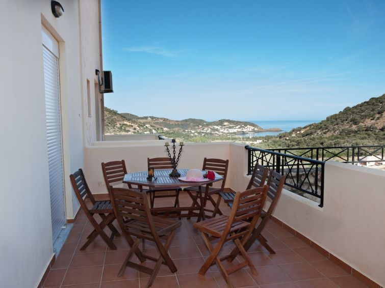 "Thalassa", villa 5 estancias 100 m2 en 2 plantas. Espacioso y luminoso, con mobiliario confortable y bonito: salón-comedor abierto con chimenea, mesa de comedor y TV satélite (pantalla plana), DVD. Salida a la terraza, a la piscina. 1 dorm. con 1 cama doble. Cocina abierta (horno, lavavajillas, 4 placas de vitrocerámica, microondas, cafetera eléctrica). Baño/WC. Aire acondicionado. Planta superior: (escaleras sin barandilla) 1 dorm. con 1 cama doble. Salida al balcón. 1 dorm. con 2 camas. Salida al balcón. 1 dorm. con 1 cama y 1 sofá-cama. Salida al balcón. Baño/WC. Aire acondicionado. 2 balcones grandes, terraza grande. Barbacoa. Vista panorámica muy bonita al mar y al paisaje. El alojamiento dispone de: lavadora, plancha, secador de pelo. Internet (Wifi, gratis). A tener en cuenta: casa para no fumadores. 1041K91003034301