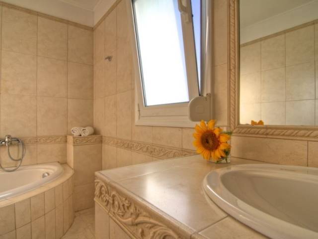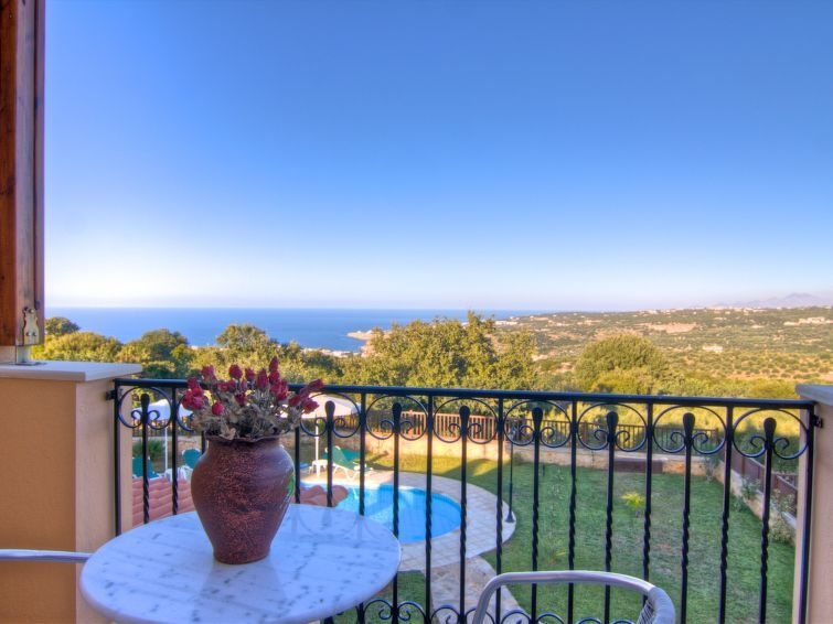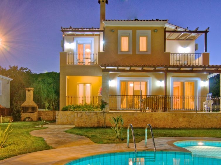 "Gerani Grand Villa II", villa 5 estancias 170 m2 en 2 plantas. Espacioso y luminoso, con mobiliario confortable y bonito: salón abierto con chimenea y TV satélite (pantalla plana), DVD. Salida al jardín, a la piscina. 1 dorm. doble con 1 cama doble. Salida a la terraza. Cocina abierta (4 fogones, horno, lavavajillas, hervidor de agua eléctrico, microondas, cafetera eléctrica) con mesa de comedor. Ducha/WC. Aire acondicionado. Planta superior: (escaleras sin barandilla) 1 dorm. doble con 1 cama doble y baño/WC. Salida al balcón. 1 dorm. doble con 2 camas. Salida al balcón. 1 dorm. doble con 1 cama doble. Salida al balcón. Baño/WC. Aire acondicionado. 2 balcones terraza grande parcialmente cubierta. Barbacoa. Vista bonita al mar y al paisaje. El alojamiento dispone de: lavadora, caja fuerte, plancha, secador de pelo. Internet (Wifi, gratis). A tener en cuenta: adecuado para familias. Casa para no fumadores. 1071459