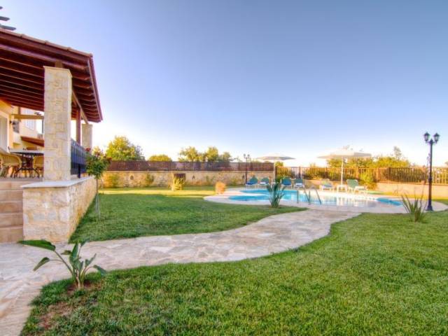 Villa "Gerani Grand Villa II", bonita, confortable de 2 plantas, individual del año 2008, reformada en 2016, rodeada de campos. En el barrio de Gerani, a 9.6 km del centro de Rethymno, lugar tranquilo, soleado, a 2.6 km del mar, a 2.6 km de la playa. Privado: jardín bonito, cuidado con flores y árboles, terreno con hierba, piscina (34 m2, 100 - 150 cm de profundidad, Disponible por temporada: 01.Abr. - 31.Oct.). Barbacoa. Cambio de sábanas 2 vez por semana. Cambio de toallas 2 veces por semana. Limpieza 2 veces por semana. Aparcamiento junto a la casa. Tienda de comestibles 1.5 km, restaurante 1.5 km, panadería 1.5 km, café 1.5 km, playa de arena "Petres" 8.7 km playa de gravilla "Kamari" 2.6 km. Centro ecuestre 14.2 km. Atracciones en los alrededores: Monastery of Arkadi 31.1 km, Eleftherna Archaeological Museum 34.2 km, Melidoni Cave 41.4 km, Rethymno Old Town 9.6 km, Fortezza Venetian Castle 10.2 km, Biotopoi Nature Park 16 km. A tener en cuenta: coche recomendable. Equipamiento para bebés a demanda (incluido). Grupos de jóvenes sólo bajo petición. La foto corresponde a una de las viviendas. Se pueden reservar alojamientos adicionales.