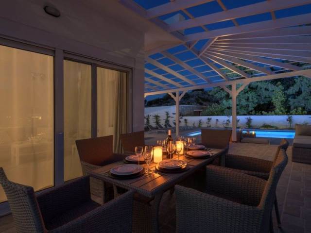"Casa Bianca", villa 4 estancias 140 m2 en 3 plantas. Espacioso y luminoso, con mobiliario confortable y bonito: salón-dormitorio abierto con 1 sofá-cama doble, chimenea y TV satélite (pantalla plana). Salida al jardín, a la piscina. Cocina abierta (horno, lavavajillas, 4 placas de vitrocerámica, hervidor de agua eléctrico, cafetera eléctrica) con pequena mesa de comedor. Aire acondicionado. En planta inferior: (escaleras sin barandilla) 1 dorm. doble con 1 cama doble. Salida a la terraza. Ducha/WC. Aire acondicionado. Planta superior: (escaleras sin barandilla) 1 dorm. doble con 1 cama doble. Salida al balcón. 1 dorm. doble con 2 camas. Ducha/WC. Aire acondicionado. Balcón grande, terraza grande parcialmente cubierta. Barbacoa. Vista bonita al paisaje. El alojamiento dispone de: lavadora, caja fuerte, plancha, secador de pelo. Internet (Wifi, gratis). 1117547