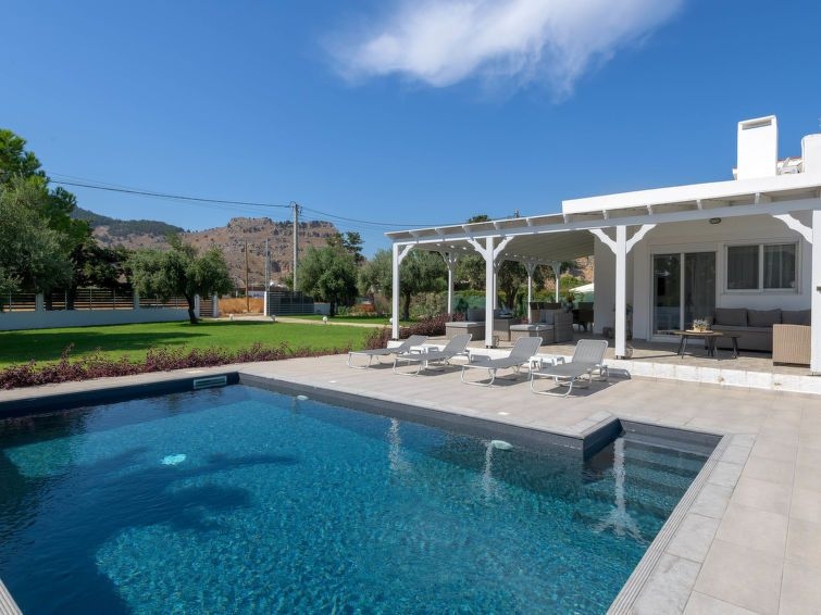 Villa "Casa Bianca", moderna, bonita de 3 plantas, individual. En el barrio de Kolymbia, lugar soleado, a 1 km del mar, a 1 km de la playa. Privado: jardín bonito, cuidado con flores y árboles, terreno con hierba, piscina rectangular (28 m2, 130 cm de profundidad, Disponible por temporada: 01.Abr. - 30.Nov.) con escalera interior. Ducha exterior, aparcamiento junto a la casa. Tienda de comestibles, supermercado, restaurante, bar, panadería, café 500 m, playa de gravilla "Kolymbia" 1 km. Campo de golf (18 hoyos) 9 km, centro ecuestre 14.6 km. Atracciones en los alrededores: Valley of the Butterflies 22 km, Lindos Acropolis 26.8 km, Asklipio Castle 39.5 km, Palace of the Grand Master of Knights 27.5 km, Medieval City of Rhodes 26.5 km, Waterpark Rhodes 16.9 km. A tener en cuenta: coche recomendable. Adecuado para familias, equipamiento para bebés a demanda (incluido). Grupos de jóvenes sólo bajo petición.
