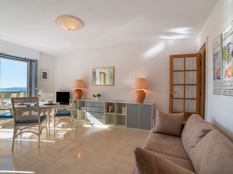 "Zénith 2", apartamento de 3 estancias 68 m2 en el 3° piso. Con mobiliario bonito y moderno: comedor con 1 sofá-cama (140 cm, 190 cm de longitud). Salida a la terraza. Salón con 1 sofá-cama (90 cm, 190 cm de longitud), aire acondicionado. Salida a la terraza. 1 dorm. con 1 cama doble (2 x 90 cm, 200 cm de longitud), media bañera/WC y aire acondicionado. Cocina abierta (2 placas de vitrocerámica, tostadora, hervidor de agua eléctrico, cafetera eléctrica, Cápsulas de café (Nespresso) extra, microondas/grill). Salida a la terraza. Ducha/WC. Calefacción. Terraza grande 15 m2. Muebles de terraza. Vista espléndida al mar. El alojamiento dispone de: lavadora, plancha, secador de pelo. Internet (Wifi, gratis). Garaje (1 coche). A tener en cuenta: apartamento para no fumadores. 1 mascota / perro. Detector de humo. 06088022530SB