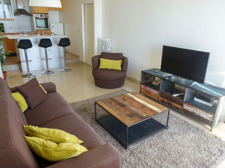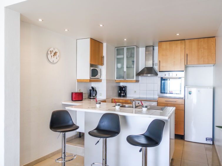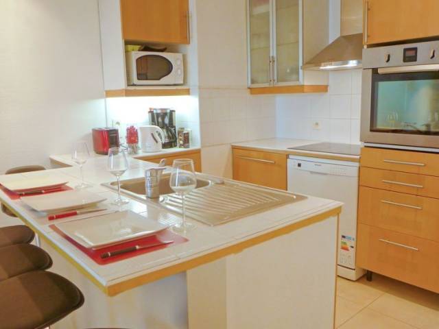 Apartamento de 3 estancias 63 m2 en el 3° piso, orientación sur. Vivienda adecuada para 4 adultos + 1 niño. Luminoso, con mobiliario bonito y moderno: sala de estar con 1 sofá-cama (140 cm, 190 cm de longitud), TV (pantalla plana). Salida al balcón, orientación sur. 1 dorm. con cortina con 1 cama de matrimonio (160 cm, 190 cm de longitud), ventilador. Salida al balcón. 1 dorm. con cortina con 2 camas (90 cm, 190 cm de longitud). Salida al balcón. (horno, lavavajillas, 4 Placas de inducción, tostadora, hervidor de agua eléctrico, microondas, congelador, cafetera eléctrica, isla de cocina) con barra americana. Salida al balcón. Ducha, WC separado. Calefacción. Muebles de balcón. Vista panorámica al mar. El alojamiento dispone de: lavadora, plancha, secador de pelo. Internet (Wifi, gratis). A tener en cuenta: apartamento para no fumadores. 06088000859PK