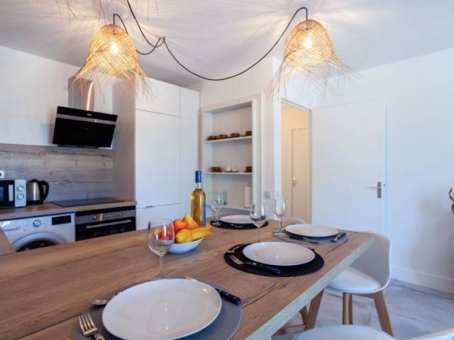 Apartamento de 2 estancias 52 m2 en el 2° piso. Completamente reformado en 2022, con mobiliario bonito: salón-comedor con 1 sofá-cama doble (140 cm, 190 cm de longitud), TV (pantalla plana). Salida al balcón. 1 dorm., grande con 1 cama (90 cm, 190 cm de longitud), 1 cama de matrimonio (160 cm, 190 cm de longitud), TV (pantalla plana). Cocina abierta (horno, 3 Placas de inducción, tostadora, hervidor de agua eléctrico, microondas, congelador, cafetera eléctrica, Cápsulas de café (Nespresso) extra). Ducha/WC. Calefacción eléctrica, aire acondicionado. Balcón pequeño 3 m2, orientación oeste. El alojamiento dispone de: lavadora, plancha, secador de pelo. Internet (Wifi, extra). Plaza de aparcamiento n. 638. A tener en cuenta: apartamento que da a la calle. 1 mascota pequeña / perro. Detector de humo. Oferta de un particular según el art. 155, IV del CGI. 83068000784TU