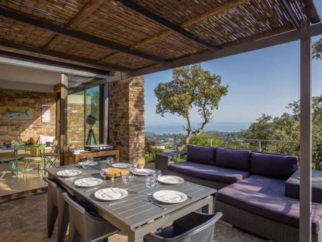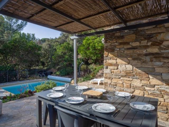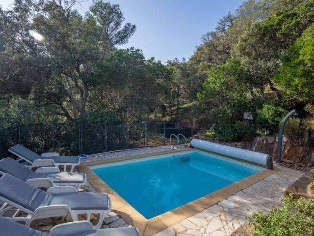 Domaine Gaou Bénat a 6 km de Le Lavandou: Casa adosada "Village des Fourches", bonita de 2 plantas. En el barrio de Gaou Bénat, en la localidad de Bormes Les Mimosas, lugar tranquilo en una colina, en un barrio residencial, a 2.5 km del mar, a 2.5 km de la playa. Privado: piscina (130 - 180 cm de profundidad, Disponible por temporada: 01.May. - 30.Oct.) con escalera interior y sistema de cobertura. Acceso estrecho. Acceso por escaleras hasta la casa. Posibilidad de aparcamiento en la calle. Tienda 4 km, tienda de comestibles 4 km, restaurante 4 km, bar 4 km, playa de piedras "Gaout Bénat" 2.5 km. Tenis 2.5 km. Atracciones en los alrededores: Magic World 29 km, Parc Olbius Riquier 26 km, St Tropez 43 km, Le Jardin des Méditerranées 19 km. Zona de senderismo Sentiers du Littoral. A tener en cuenta: coche recomendable. La entrega de llaves se realiza por la agencia Interhome en Le Lavandou, 6 km.