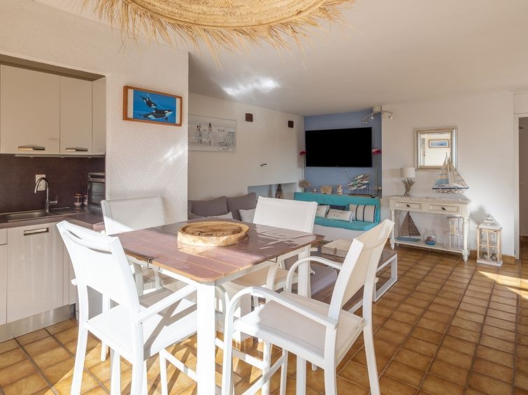 Casa adosada 5 estancias 97 m2 en 2 plantas. Luminoso, con mobiliario confortable y de buen gusto: salón-comedor grande con TV (pantalla plana), aire acondicionado. 1 dorm. con 1 x 2 literas (90 cm, 190 cm de longitud). 1 dorm. con 1 cama de matrimonio (140 cm, 190 cm de longitud). Rincón-cocina (horno, lavavajillas, 2 placas de vitrocerámica, tostadora, hervidor de agua eléctrico, microondas, cafetera eléctrica). Ducha, WC separado. Calefacción eléctrica. En planta inferior: 1 dorm. con 1 cama de matrimonio (140 cm, 190 cm de longitud). 1 dorm. con 2 camas (80 cm, 190 cm de longitud). Ducha/WC. Terraza 15 m2, orientación sur y orientación este. Muebles de terraza, barbacoa eléctica, tumbonas. Vista espléndida al mar. El alojamiento dispone de: lavadora, secador de pelo. Internet (Wifi, extra). A tener en cuenta: casa para no fumadores. TV solamente FR. Detector de humo. No hay conexión interna entre las diferentes unidades. Oferta de un particular según el art. 155, IV del CGI. 83019000089HJ