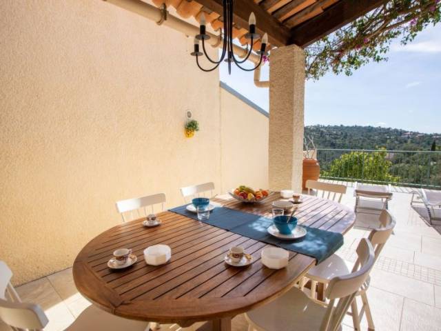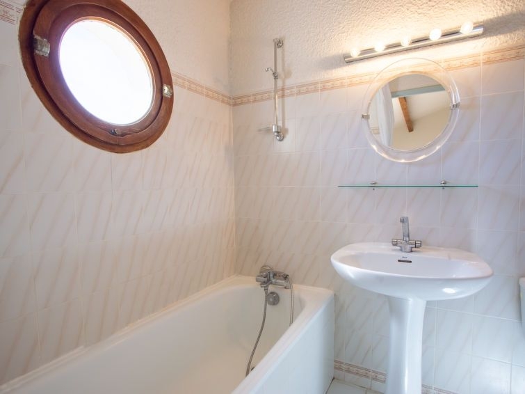 Casa adosada 5 estancias 90 m2 en 2 plantas. Con mobiliario funcional y bonito: salón-comedor con TV y aire acondicionado. Salida a la terraza. 1 dorm. con 1 cama de matrimonio (140 cm, 190 cm de longitud), baño y aire acondicionado. 1 dorm. con 1 cama de matrimonio (160 cm, 200 cm de longitud), lavabo. Cocina abierta (horno, lavavajillas, 4 Placas de inducción, microondas, congelador, cafetera eléctrica). WC separado. Calefacción eléctrica. Planta superior: 1 dorm. con 1 cama de matrimonio (140 cm, 190 cm de longitud), aire acondicionado. (escalera de caracol) altillo abierto con cortina con 2 camas (100 cm, 190 cm de longitud), aire acondicionado. Baño/WC. Calefacción eléctrica. Terraza grande 50 m2, orientación sur. Barbacoa, tumbonas. Vista bonita al valle y al canal. El alojamiento dispone de: lavadora, plancha. Internet (Wifi, extra). Plaza de aparcamiento junto a la casa. A tener en cuenta: TV solamente FR. Detector de humo. 08304083-07119-0026