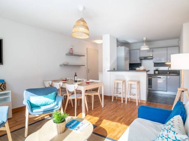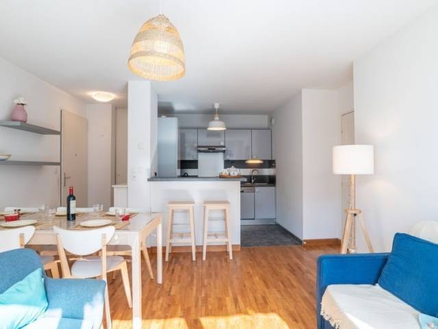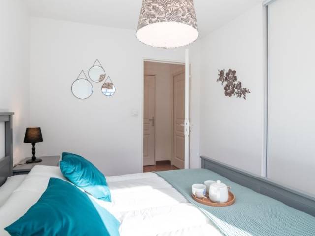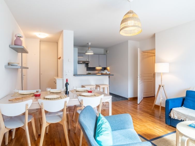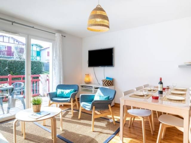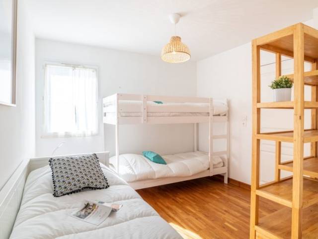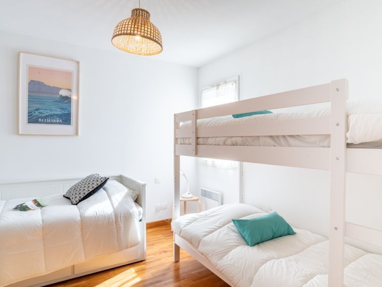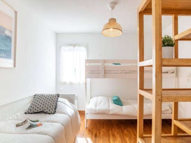 Bidart: Residencia "Les Jardins d'Oihana". Lugar tranquilo en un barrio residencial, a 2 km del mar, a 2 km de la playa. Tienda 2 km, tienda de comestibles 2 km, supermercado 2 km, centro comercial 2 km, restaurante 2.4 km, bar 2 km, panadería 2 km, café 2 km, zona peatonal 2.4 km, a 23 minutos del centro andando, parada de autobús "Hiri Artea" 700 m, estación de tren "Biarritz" 5 km, playa de arena "Erretegia" 2 km. Puerto deportivo 4.3 km, campo de golf (9 hoyos) 3.4 km, escuela de surf 2.2 km. Atracciones en los alrededores: bid'a parc 3.2 km, aquarium 6.6 km. Zona de senderismo La Rhune 19.6 km. Apartamento de 3 estancias 60 m2 en el 1° piso. Vivienda adecuada para 2 adultos + 3 niños. Con mobiliario confortable: salón-comedor con TV (pantalla plana). Salida al balcón. 1 dorm. con 1 cama de matrimonio (160 cm, 200 cm de longitud). 1 dorm. con 3 camas (90 cm, 190 cm de longitud). Cocina abierta (horno, lavavajillas, 3 Placas de inducción, tostadora, hervidor de agua eléctrico, congelador, cafetera eléctrica, microondas/grill). Ducha, WC separado, doble lavabo. Calefacción eléctrica. Balcón 8 m2, orientación sur y orientación oeste. Muebles de balcón. El alojamiento dispone de: lavadora, secador de pelo. Internet (Wifi, extra). Plaza de aparcamiento n. 199 et 200 (2 Coches). A tener en cuenta: detector de humo, sin ascensor. 641250018103A