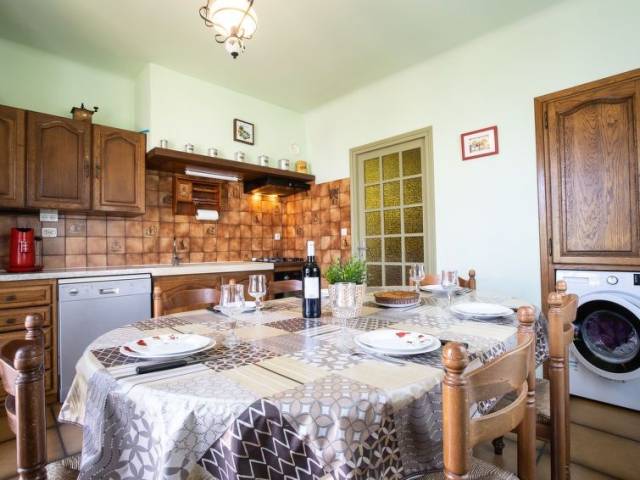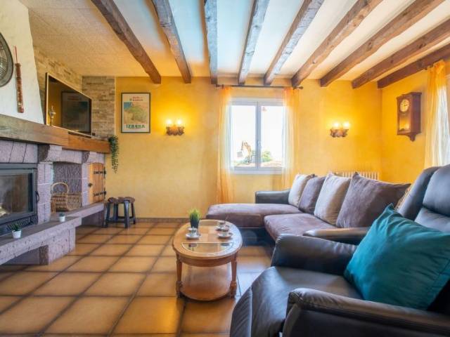 Casa 5 estancias 150 m2. Con mobiliario confortable y bonito: salón-comedor 32 m2 con TV (pantalla plana), DVD. Salida al balcón, orientación sur. 1 dorm. con 1 cama de matrimonio (140 cm, 190 cm de longitud). Salida al balcón. 1 dorm. con 2 camas (90 cm, 190 cm de longitud). Grande cocina (horno, lavavajillas, 4 fuegos, tostadora, hervidor de agua eléctrico, congelador, cafetera eléctrica, microondas/grill) con mesa de comedor. Salida a la terraza, a la piscina. Baño/WC, WC separado, doble lavabo. Calefacción. Planta superior: 1 dorm. con 2 camas (90 cm, 190 cm de longitud). 1 dorm. con 1 cama de matrimonio (1 x 140 cm, 190 cm de longitud), lavabo y ducha. Salida al balcón, orientación sur. Terraza 30 m2, orientación sureste. Muebles de terraza. Vista panorámica muy bonita a las montañas, a la piscina y al jardín. El alojamiento dispone de: lavadora, plancha, cuna, secador de pelo. Internet (Wifi, gratis). Plaza de aparcamiento (vallada, 3 Coches). A tener en cuenta: casa para no fumadores. 1 mascota / perro. Detector de humo. 64038000246E7