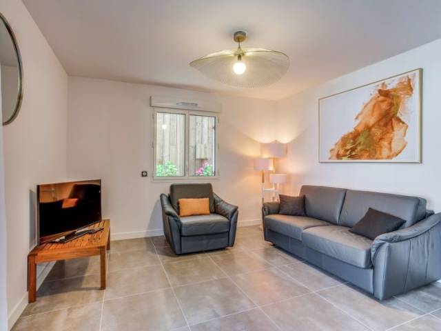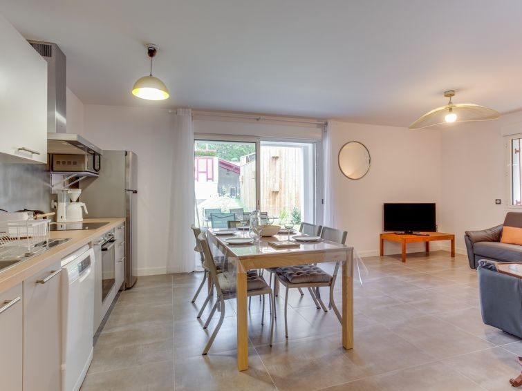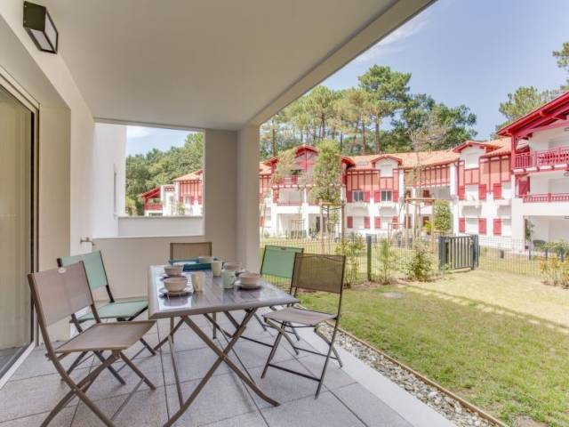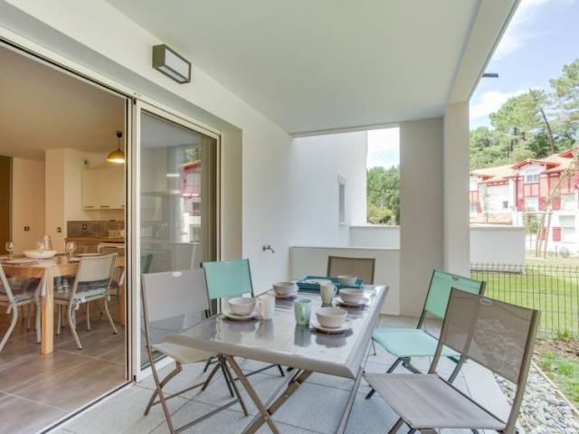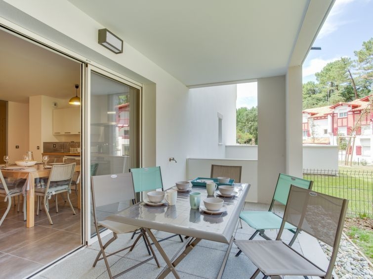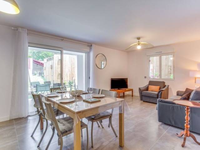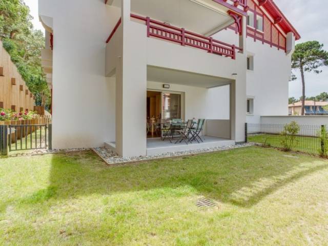 Residencia "Domaine Aïga", de 2 plantas del año 2020, rodeada de árboles. A 2 km del centro de Hossegor, lugar tranquilo en un barrio residencial, a 1.5 km del mar, a 50 m de un lago, a 1.5 km de la playa. Tienda 2 km, tienda de comestibles 2 km, supermercado 2 km, restaurante 1 km, playa de arena "Les Estagnots" 1.5 km. Campo de golf (18 hoyos) 4 km. Lagos conocidos fácilmente accesibles: lac d'Hossegor 50 m. Grupos de jóvenes sólo bajo petición. Apartamento de 3 estancias 63 m2, en la planta baja. Con mobiliario confortable y bonito: salón-comedor 30 m2 con 1 sofá-cama (120 cm, 190 cm de longitud), TV (pantalla plana). Salida a la terraza, a la terraza-jardín. 1 dorm. 12 m2 con 2 camas (90 cm, 190 cm de longitud). 1 dorm. 10 m2 con 1 cama de matrimonio (160 cm, 190 cm de longitud). Cocina abierta (horno, lavavajillas, 3 Placas de inducción, microondas, cafetera eléctrica). Ducha, WC separado. Calefacción de gas. Terraza 11 m2, cubierta, orientación oeste y orientación norte. Muebles de terraza. El alojamiento dispone de: lavadora, plancha, secador de pelo. Internet (Wifi, gratis). Plaza de aparcamiento n. 3 (vallada). A tener en cuenta: adecuado para familias. Apartamento para no fumadores. Detector de humo. 403040008557A