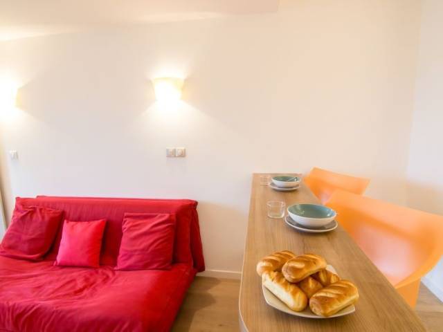 Estudio 25 m2 en el 6° piso. Con mobiliario moderno: entrada. Salón-comedor con 1 sofá-cama doble (1 x 160 cm, 200 cm de longitud), TV (pantalla plana). Salida al balcón. Rincón-cocina (2 placas de vitrocerámica, tostadora, hervidor de agua eléctrico, microondas, cafetera eléctrica). Baño/WC. Calefacción eléctrica. Suelo de parquet. Balcón 1 m2, orientación este. Vista al puerto. El alojamiento dispone de: Internet (Wifi, gratis). A tener en cuenta: apartamento para no fumadores. Detector de humo.