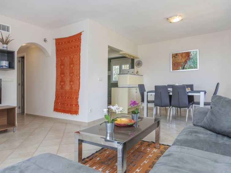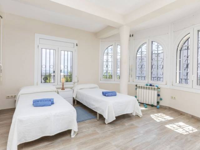 "Villa Cuba", casa 6 estancias 140 m2 en 2 plantas. Espacioso, con mobiliario funcional y confortable: salón-comedor con TV digital. Salida a la terraza-jardín. 1 dorm. con 1 cama de matrimonio (160 cm, 200 cm de longitud). Cocina abierta (horno, lavavajillas, 4 placas de vitrocerámica, tostadora, microondas, congelador, cafetera eléctrica). Salida al jardín. Ducha/WC. Planta superior: salón-comedor con TV satélite. Salida a la terraza. 2 dorm., cada habitación con 1 cama de matrimonio (160 cm, 200 cm de longitud). 1 dorm. con 2 camas (90 cm, 190 cm de longitud). Cocina abierta (horno, lavavajillas, 4 placas de vitrocerámica, tostadora, microondas, congelador, cafetera eléctrica). Salida al jardín. 2 ducha/WC. Aire acondicionado, aire caliente. 2 terrazas grandes. Muebles de terraza, tumbonas (4). Vista panorámica al mar, a la piscina, al jardín y a la localidad. El alojamiento dispone de: lavadora, plancha, secador de pelo. Internet (Wifi, gratis). A tener en cuenta: apartamento para no fumadores. TV solamente ES. Sin ascensor. VT-37826-CS