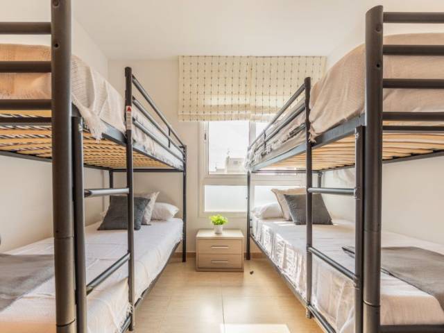Star: Casa de apartamentos "Star". En el centro de l'Ampolla, a 300 m del mar, a 300 m de la playa. En el inmueble: Wifi, ascensor. Aparcamiento n. 2. Supermercado 10 m, restaurante, bar 50 m, estación de tren "l'Ampolla" 50 m, playa de arena 300 m. Atracciones en los alrededores: Club Naútico de l'Ampolla 50m, Portaventura 65 km, Parque natural del Delta del Ebro 9 km, Golf Pitch & Putt 4 km. El propietario no acepta grupos de adolescentes/jóvenes. A tener en cuenta: vías del tren en la proximidad. "Star", apartamento de 4 estancias 120 m2 en el 2° piso. Espacioso y luminoso, con mobiliario funcional y confortable: salón-comedor con TV digital, aire acondicionado y bomba de calor, caliente. Salida al balcón. 1 dorm. con 1 cama de matrimonio (190 cm, 180 cm de longitud), baño/WC, aire acondicionado y bomba de calor, caliente. Salida al balcón. 1 dorm. con 2 camas (90 cm, 190 cm de longitud), TV, aire acondicionado y bomba de calor, caliente. 1 dorm. con 2 x 2 literas (90 cm, 190 cm de longitud), aire acondicionado y bomba de calor, caliente. Cocina (lavavajillas, 4 Placas de inducción, tostadora, hervidor de agua eléctrico, microondas, cafetera eléctrica). 2 ducha/WC. Aire acondicionado, aire caliente. Balcón. Muebles de balcón. El alojamiento dispone de: lavadora, plancha, trona, cuna, secador de pelo. Internet (Wifi, gratis). Plaza de aparcamiento n. 2. Adecuado para familias. 1 mascota / perro. HUTTE-066527