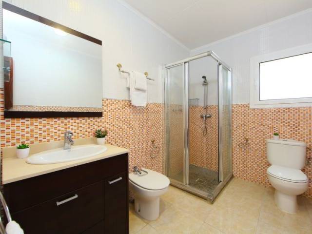 Casa 4 estancias 90 m2, en la planta baja. Con mobiliario confortable y bonito: salón-comedor 30 m2 con chimenea, mesa de comedor y TV. Salida a la terraza-jardín, a la piscina. 1 dorm. con 2 camas (90 cm). 1 dorm. con 1 x 2 literas (90 cm). 1 dorm. con 1 cama de matrimonio (1 x 135 cm). Cocina 10 m2 (4 fogones, horno, lavavajillas, microondas, congelador). Ducha/WC. Aire acondicionado, aire caliente. Muebles de terraza, barbacoa. Vista a las montañas. El alojamiento dispone de: lavadora, mosquitera. Internet (Wifi, gratis). Plaza de aparcamiento junto a la casa. Permitido máximo 2 mascotas / perros. HUTTE000914
