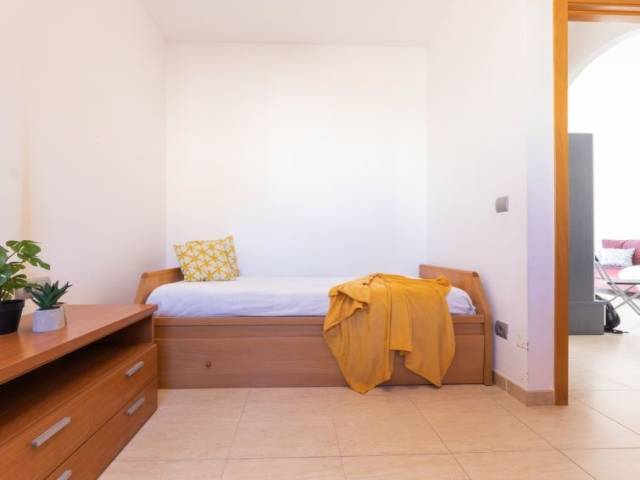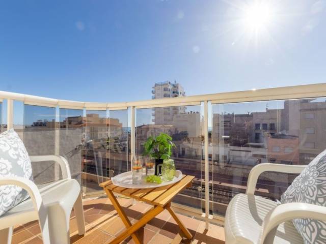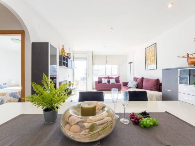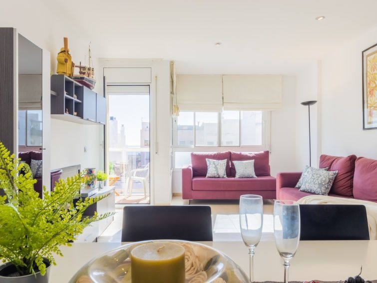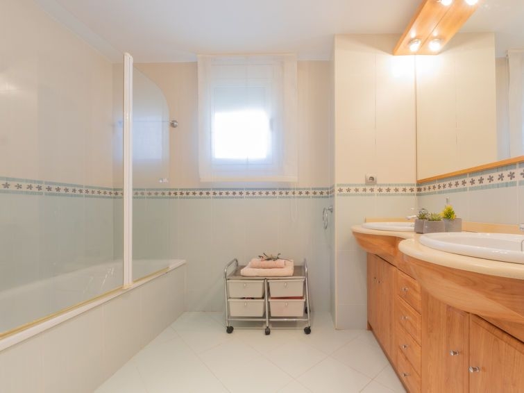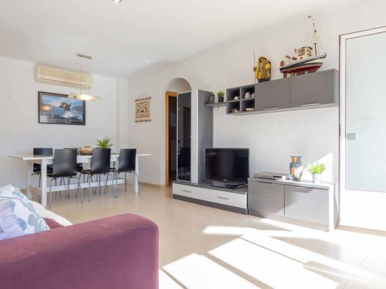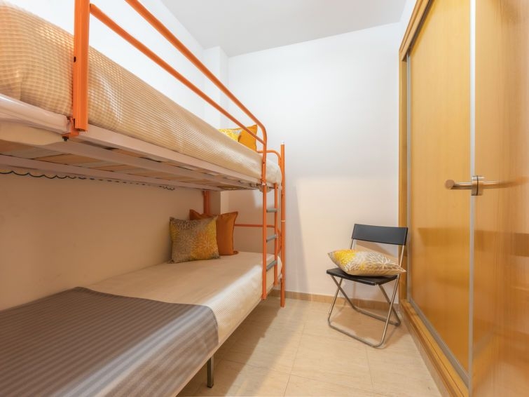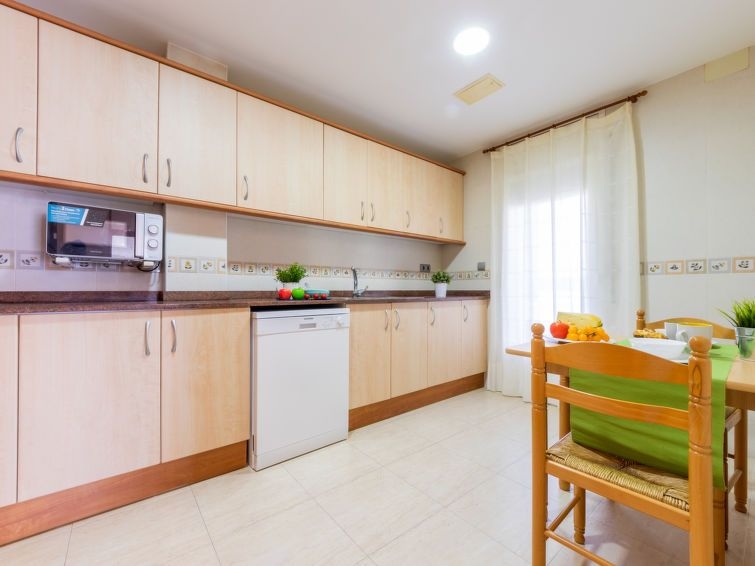 "Tere", apartamento de 4 estancias 89 m2 en el 2° piso. Con mobiliario funcional y confortable: salón-comedor con TV digital y aire acondicionado. Salida al balcón. 1 dorm. con 1 cama de matrimonio (135 cm, 190 cm de longitud). 1 dorm. con 1 cama-nido (2 pers. 2 x 90 cm, 190 cm de longitud). 1 dorm. con 1 x 2 literas (90 cm, 190 cm de longitud). Cocina (4 fogones, lavavajillas, tostadora, microondas, cafetera eléctrica). Baño/WC. Ningún tipo de calefacción. Balcón. Muebles de balcón. El alojamiento dispone de: lavadora, plancha, trona, cuna, secador de pelo. Internet (Wifi, gratis). Adecuado para familias. 1 mascota / perro. IDT150MWJBB