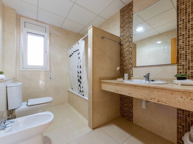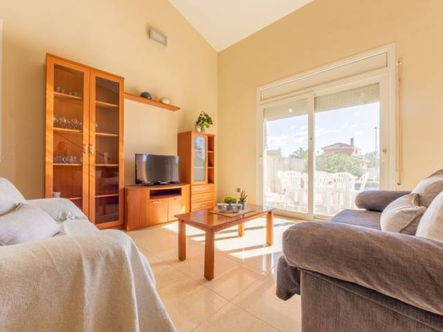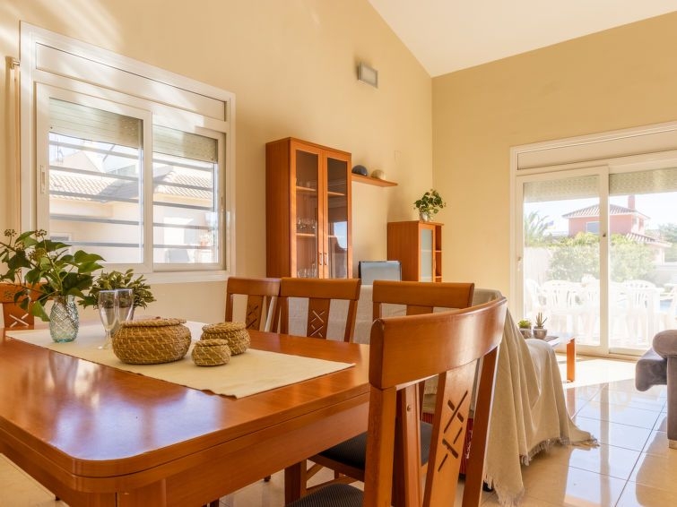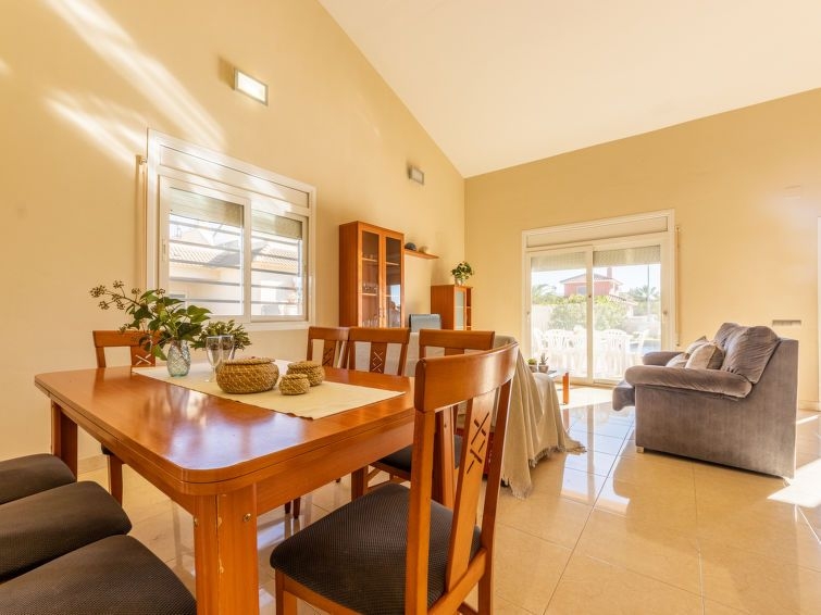 Riumar a 8 km de Deltebre: Casa "Hector", amplia, bonita de 2 plantas, adosada por un lado. A 500 m del mar, a 500 m de la playa. Privado: terreno (vallada), piscina rectangular (Disponible por temporada: 01.Ene. - 31.Dic.). Ducha exterior, aparcamiento (para 2 coches) en el mismo terreno, garaje individual. Tienda, restaurante, bar 500 m. Casa 5 estancias. Espacioso, con mobiliario confortable y bonito: salón-comedor con TV satélite y aire acondicionado. Salida a la terraza-jardín. 1 dorm. con 1 cama de matrimonio. Cocina abierta (horno, 1 placas de vitrocerámica, tostadora, microondas, congelador). Baño/WC. Aire acondicionado, aire caliente. Planta superior: 1 dorm. con 1 cama de matrimonio. 2 dorm., cada habitación con 2 camas. Ducha/WC. Terraza-jardín grande. Muebles de terraza, barbacoa, tumbonas. El alojamiento dispone de: lavadora, mosquitera. Internet (Wifi, gratis). 2 mascotas / perros. HUTTE000151